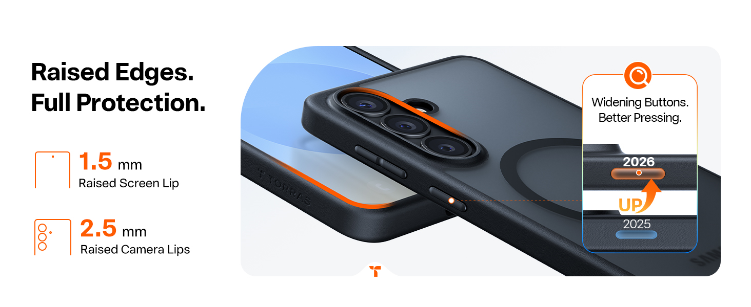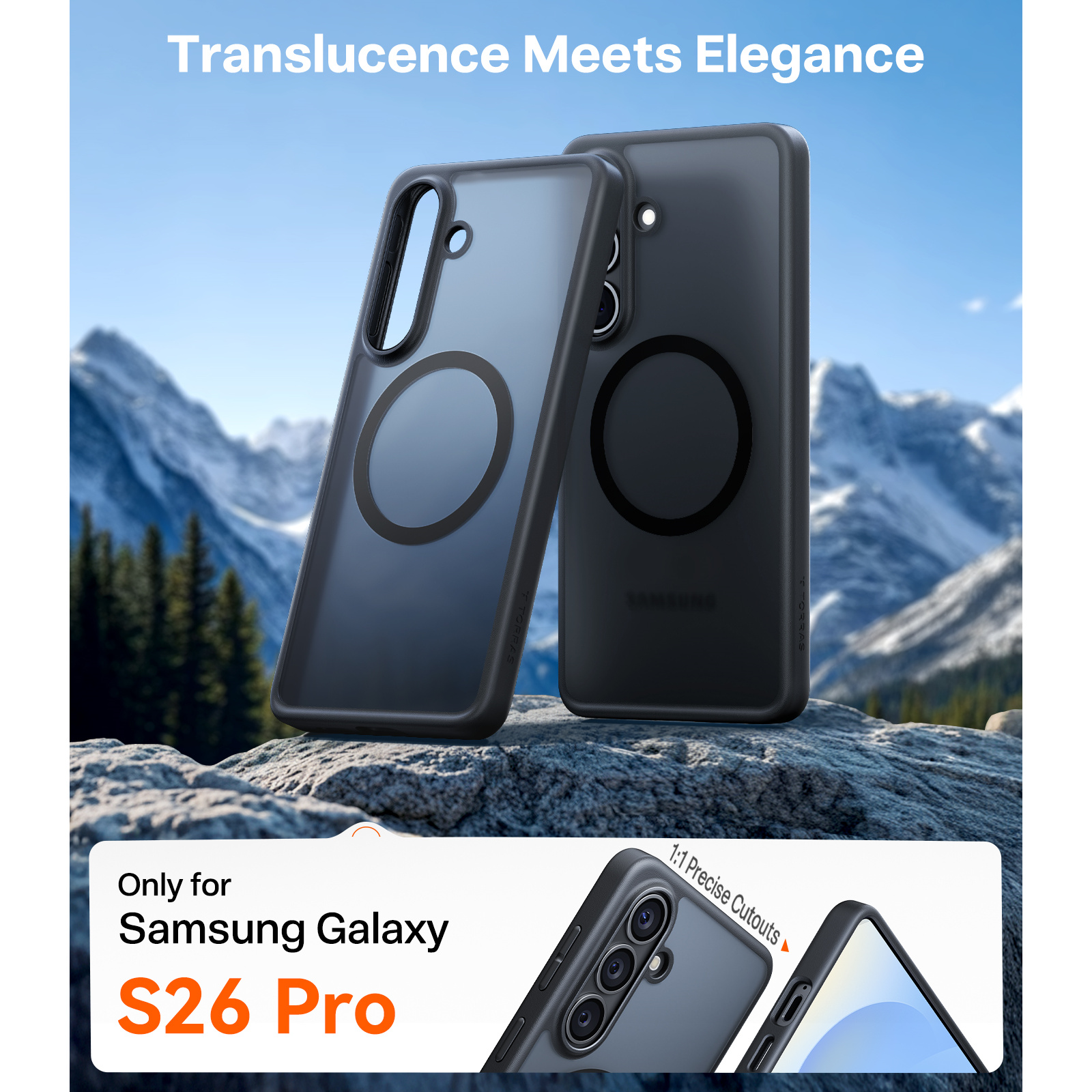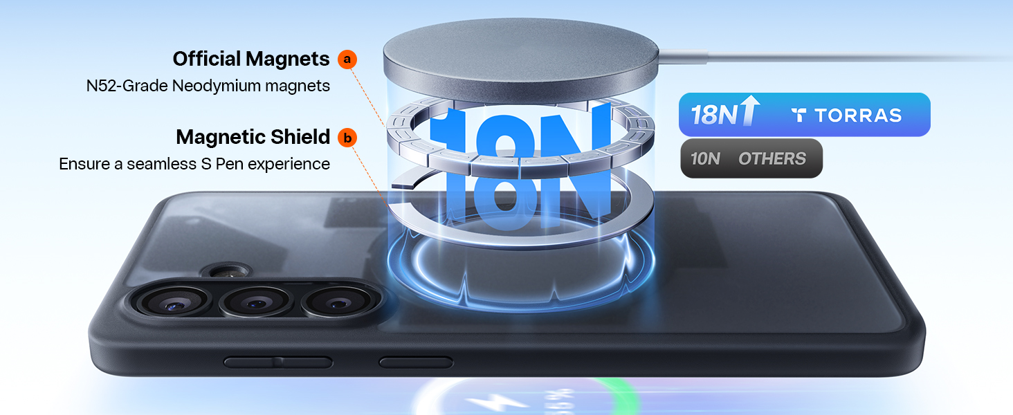 Torras Galaxy S26+ Guardian Magnetic Case - Black - Magnetic Wireless Compatible - Camera Protection - Matte Translucent Back - Military Grade Drop Protection