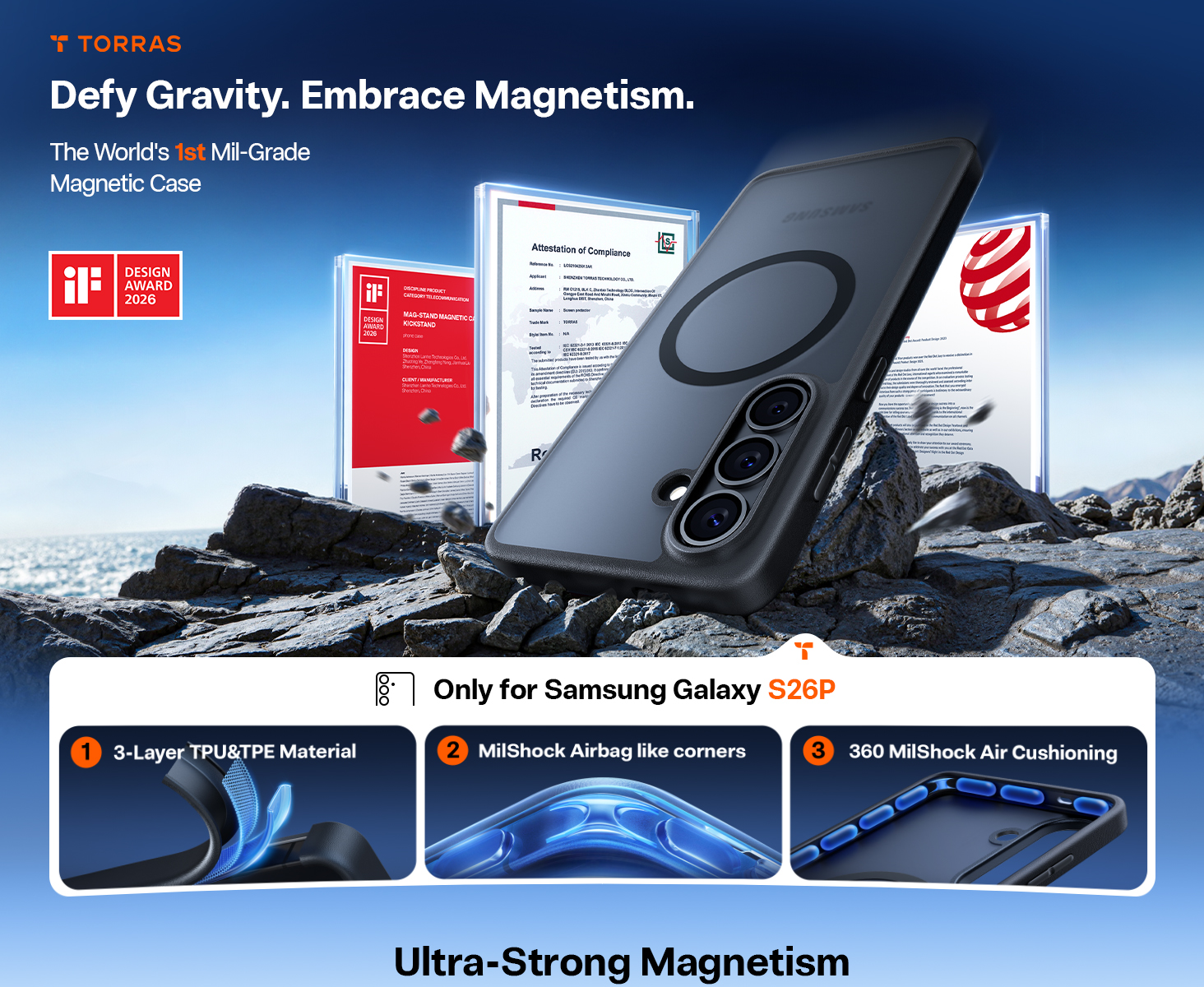 Torras Galaxy S26+ Guardian Magnetic Case - Black