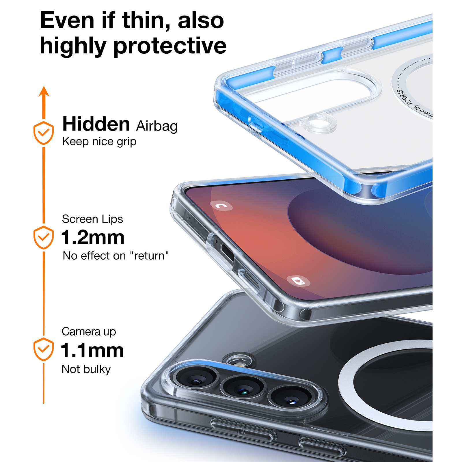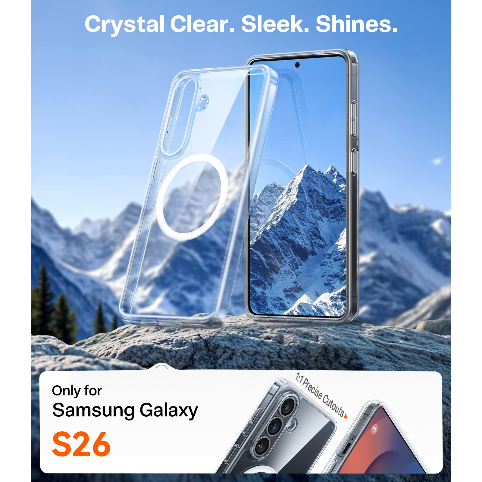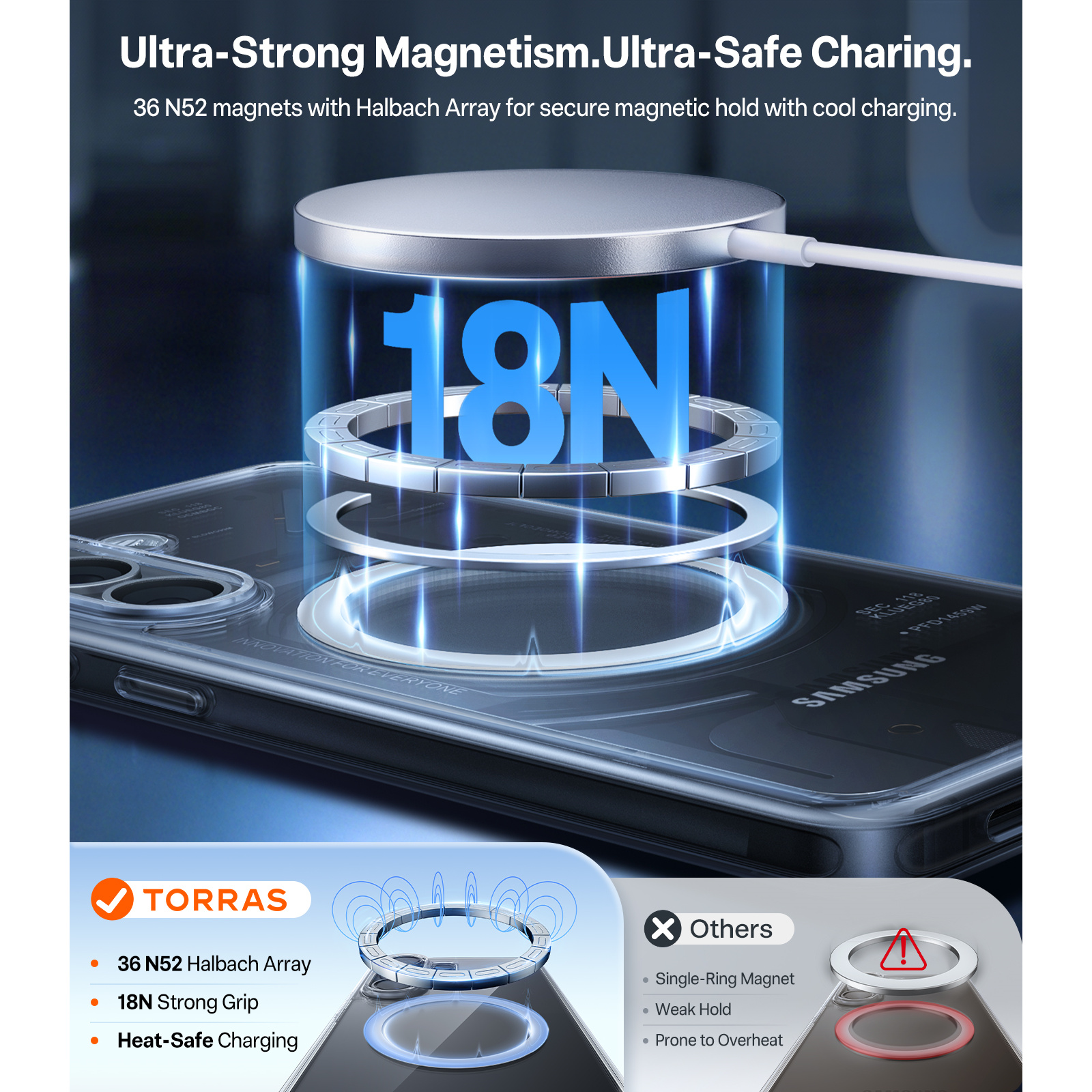 Torras Galaxy S26+ Guardian Magnetic Case - Clear - Magnetic Wireless Compatible - Military Grade Drop Protection - 18N Super-Strong Magnetic Hold - Diamond Clear