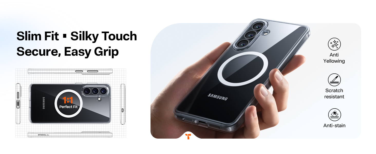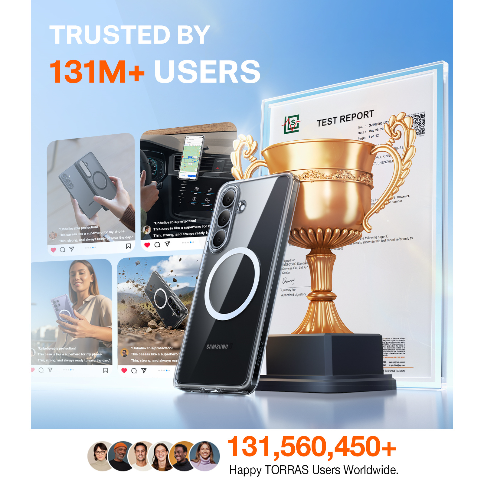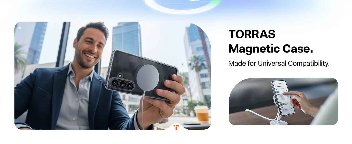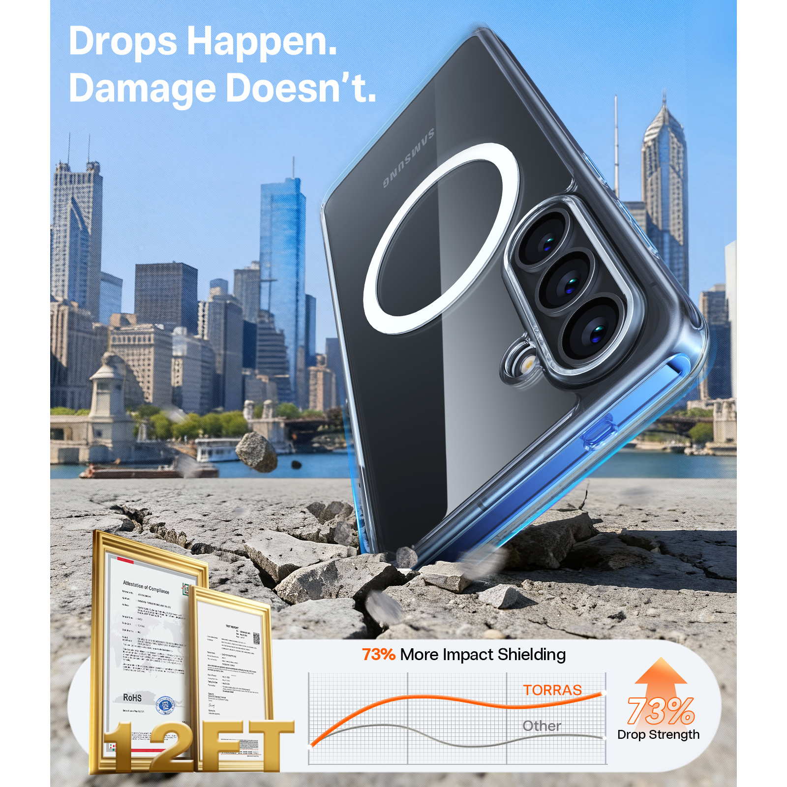 Torras Galaxy S26+ Guardian Magnetic Case - Clear - Magnetic Wireless Compatible - Military Grade Drop Protection - 18N Super-Strong Magnetic Hold - Diamond Clear