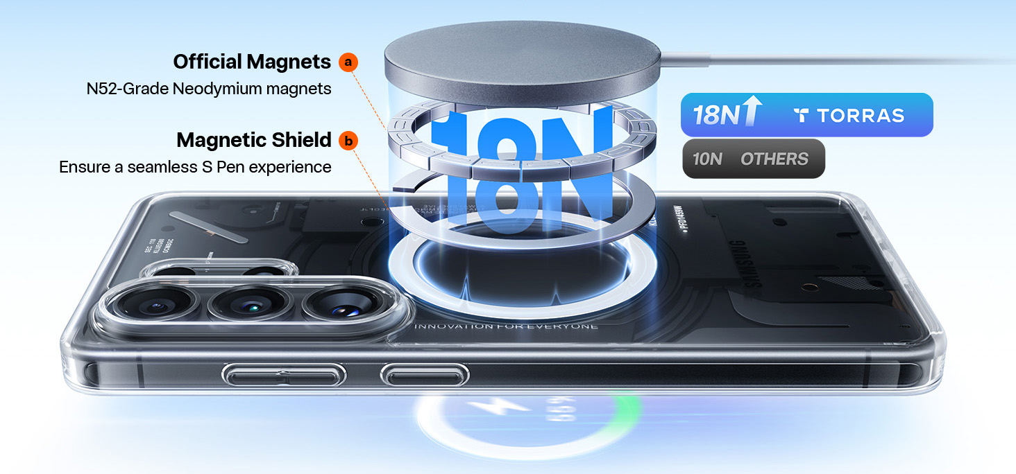 Torras Galaxy S26 Ultra Guardian Magnetic Case - Clear MagSafe Compatible - Translucent Slim