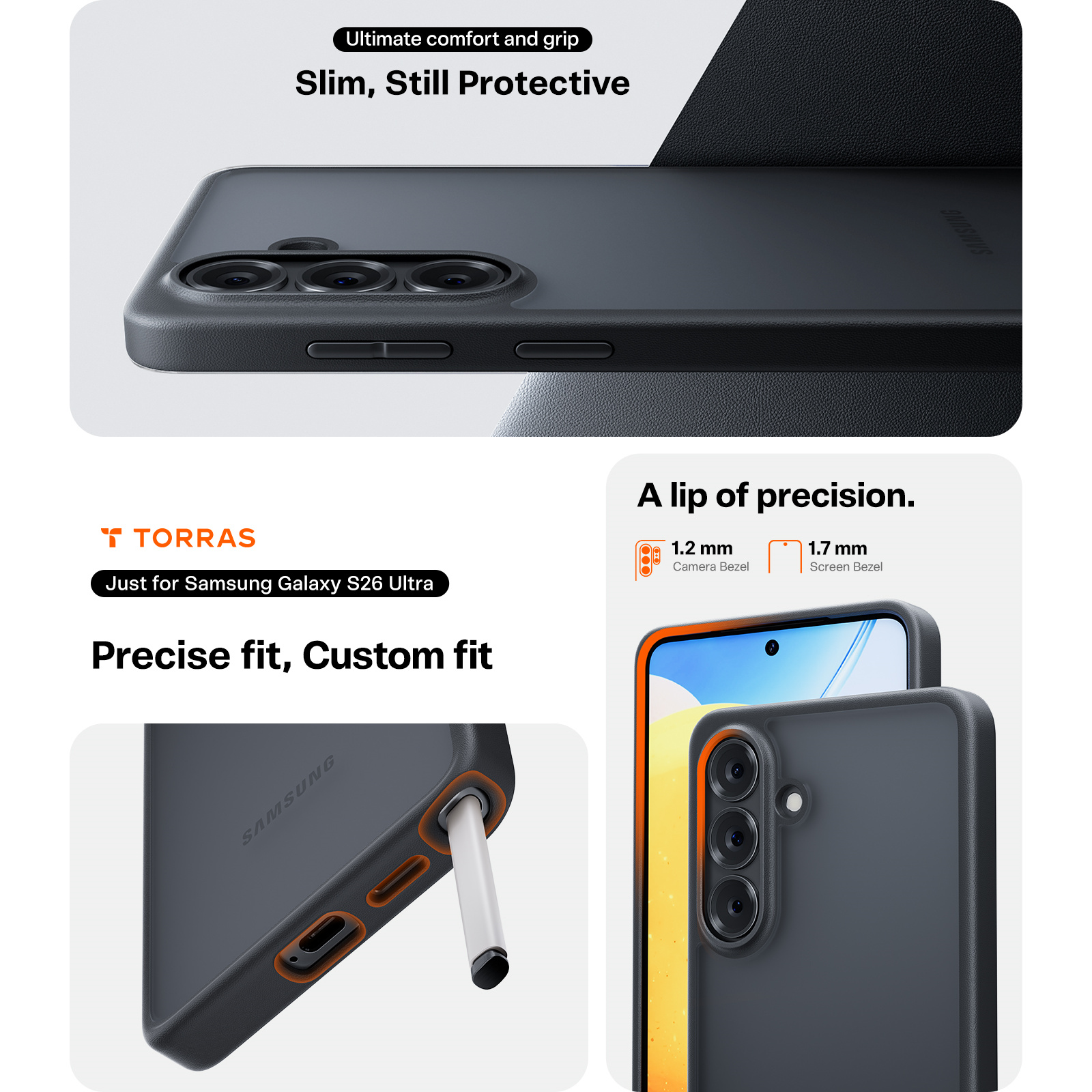 Torras Galaxy S26+ Guardian Case - Black - UltraSlim - Military-Grade Protection - Matte Translucent Back