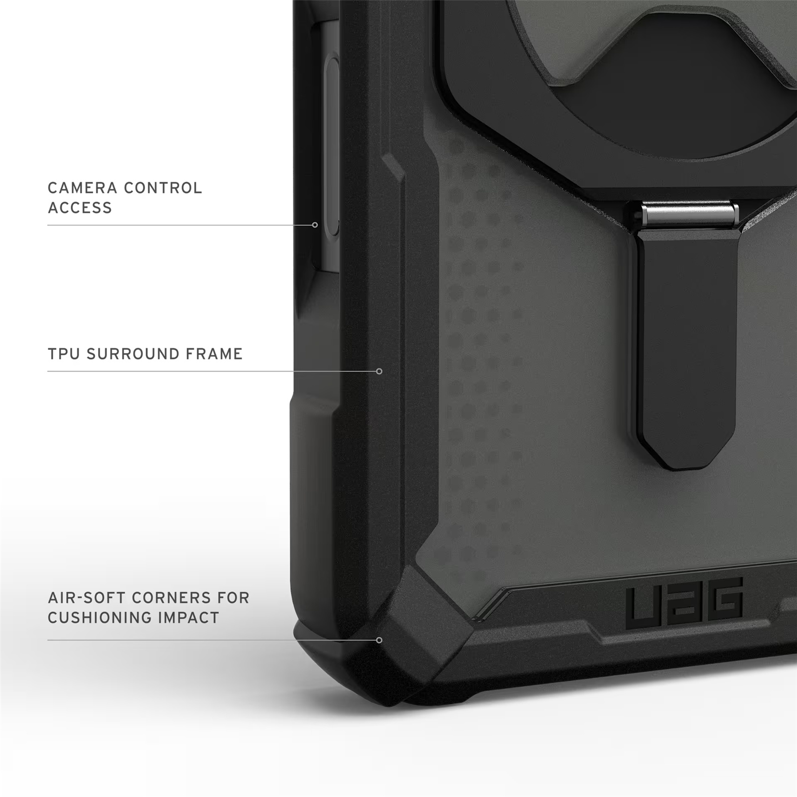 The Plasma XTE Case offers a perfect blend of cutting-edge design and reliable protection. This case features an integrated metal kickstand, allowing you to easily switch between landscape and portrait viewing modes for hands-free photos, video calls, and streaming. Engineered for both durability and style, its featherlight composite construction provides a sleek profile without compromising strength. With advanced air-soft corners, the case offers superior cushioning against drops, while the raised screen surround adds an extra layer of protection to guard your screen against scratches and cracks. The built-in powerful magnet module ensures seamless MagSafe charging compatibility, keeping your device charged and ready.