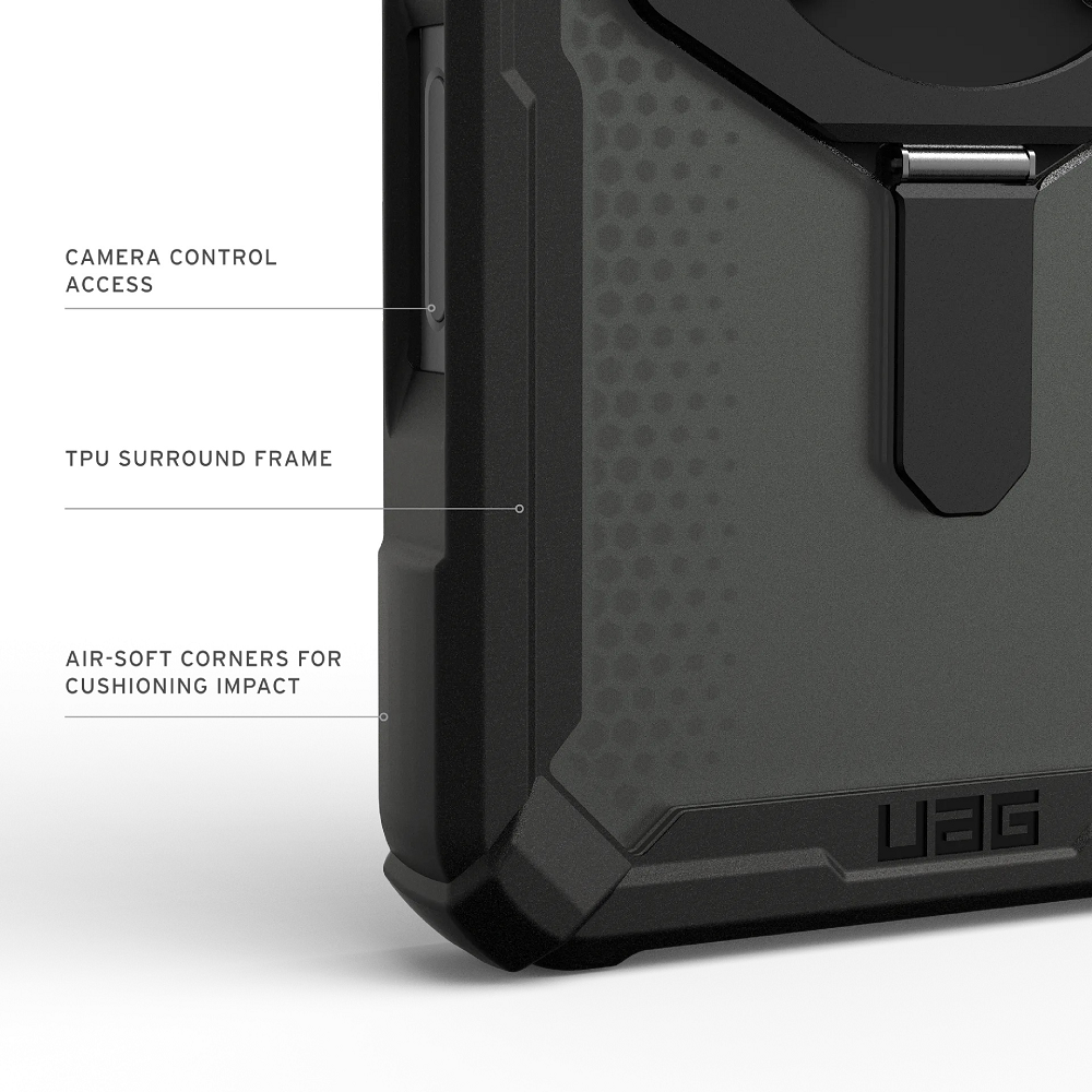 The Plasma XTE Case offers a perfect blend of cutting-edge design and reliable protection. This case features an integrated metal kickstand, allowing you to easily switch between landscape and portrait viewing modes for hands-free photos, video calls, and streaming. Engineered for both durability and style, its featherlight composite construction provides a sleek profile without compromising strength. With advanced air-soft corners, the case offers superior cushioning against drops, while the raised screen surround adds an extra layer of protection to guard your screen against scratches and cracks. The built-in powerful magnet module ensures seamless MagSafe charging compatibility, keeping your device charged and ready.