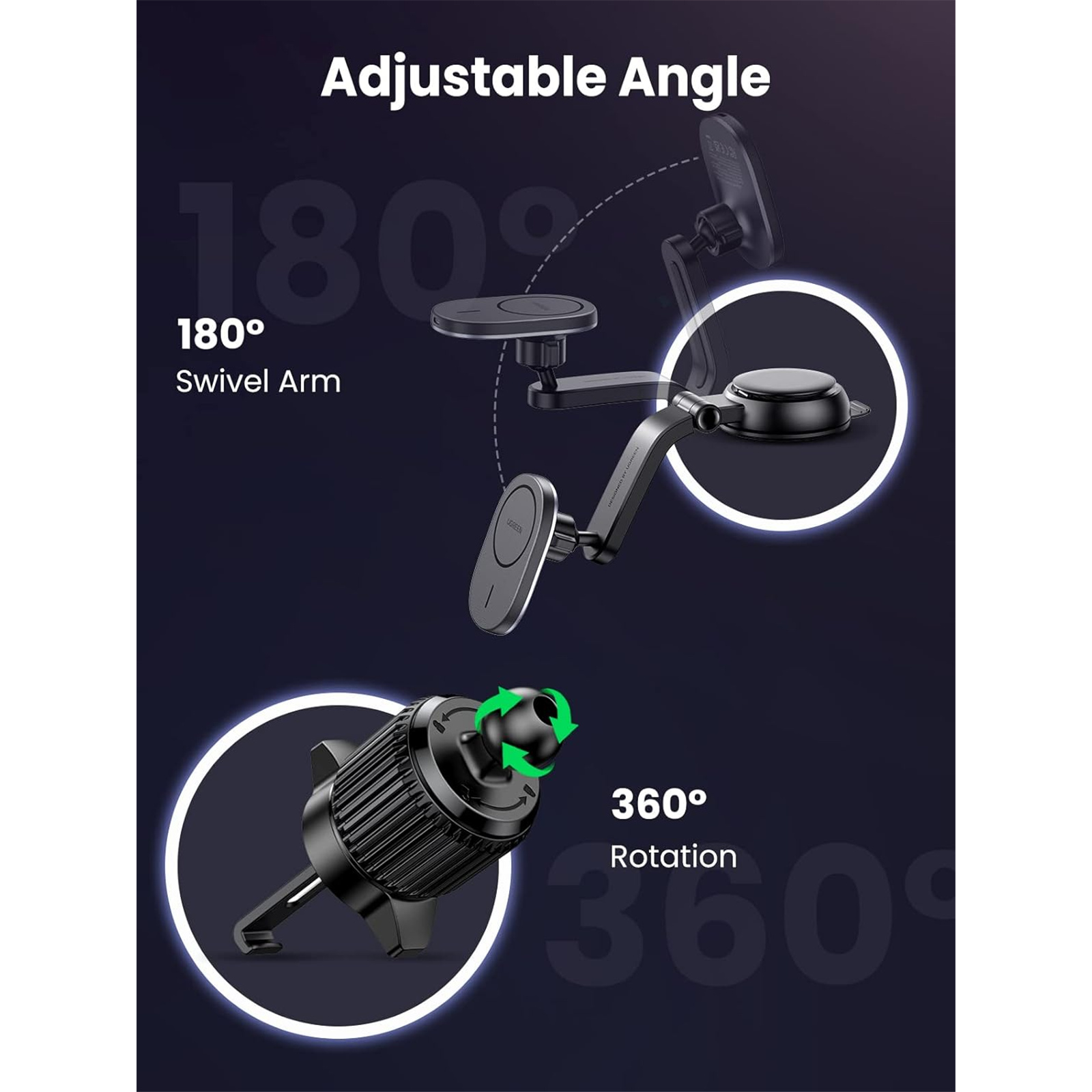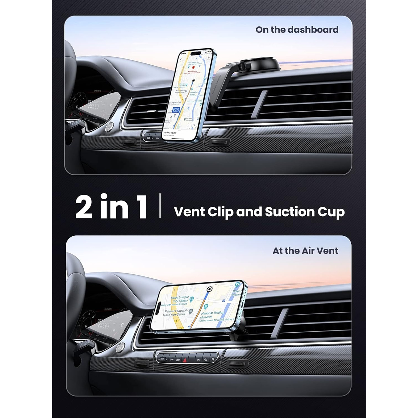 UGREEN CD345 15W Magnetic Wireless Car Charger Air Vent Clip & Suction Cup 2 in1 Installation - Compatible with iPhone 14/14 Pro Max 13 Pro Max 12 Pro