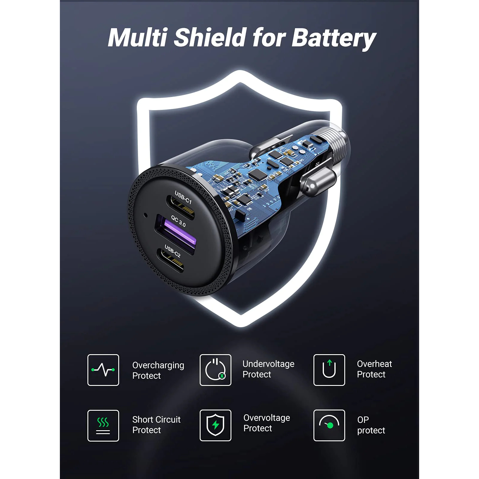 UGREEN CD239 69W PD Triple Port Car Charger