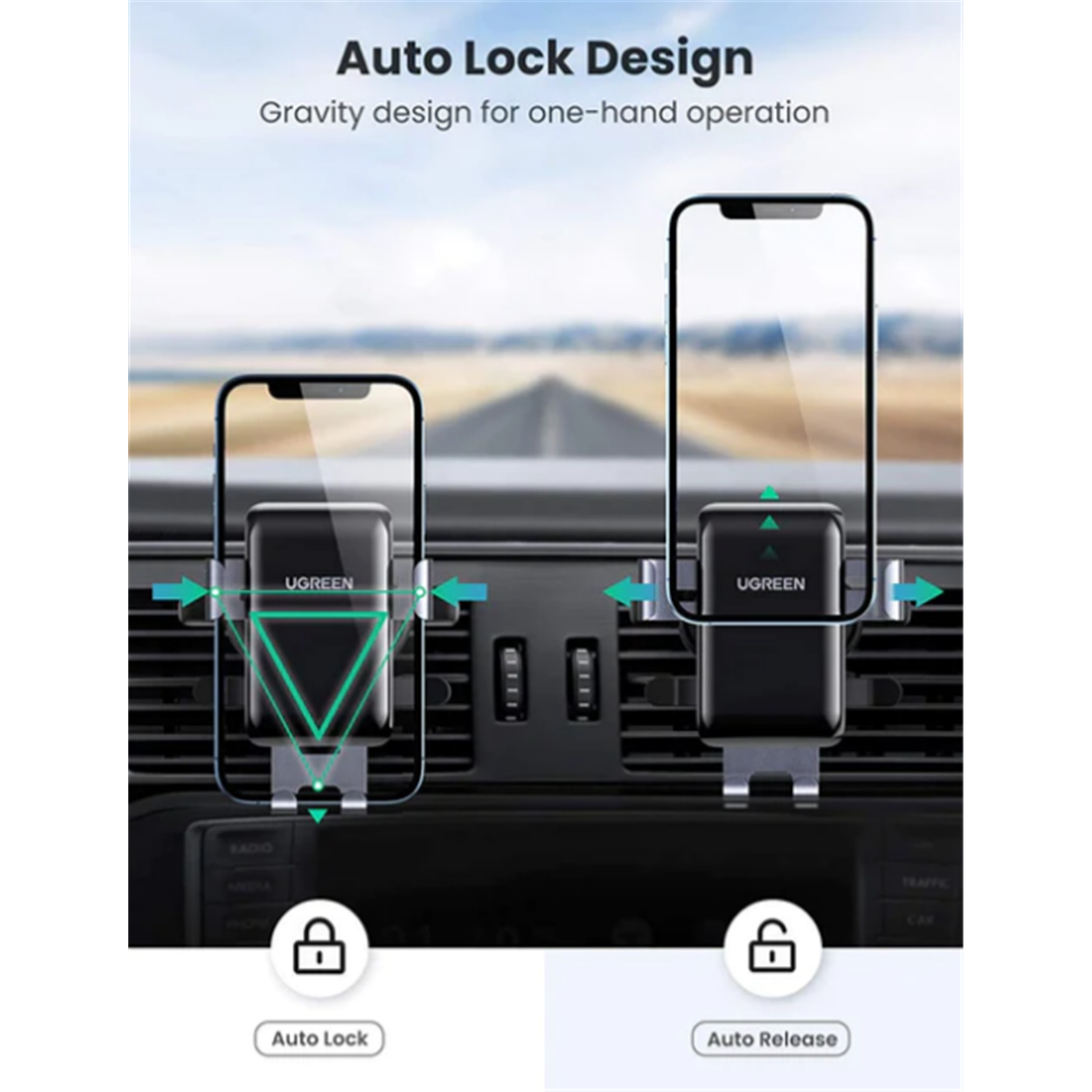 With the gravity auto lock design, this UGREEN Car Phone Cradle enables one-hand operation.