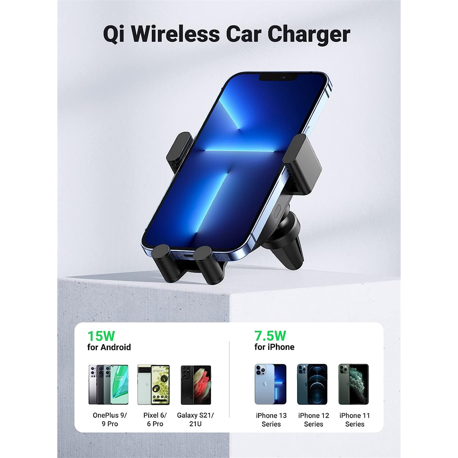 UGREEN CD256 15W Qi Induction Wireless Fast Car Charger Phone Holder Compatible with iPhone 14/14 Pro Max 13 Pro Max 12 Pro 11 X Galaxy S21 Ultra S20 Note 20 Note 10