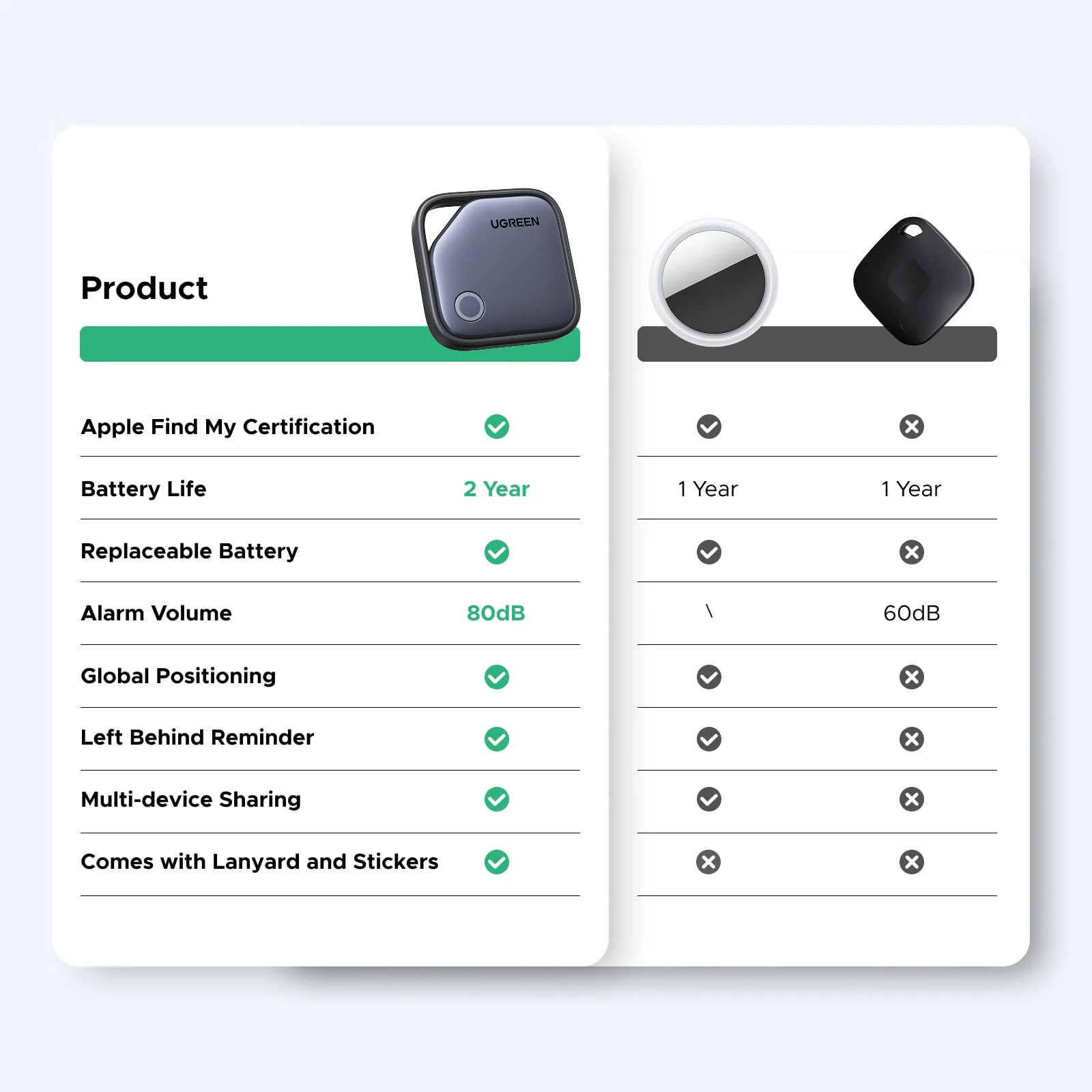 UGREEN 45297 FineTrackSmart Finder - Apple Find My Certified (iOS Only) - 2-Year Replaceable Battery