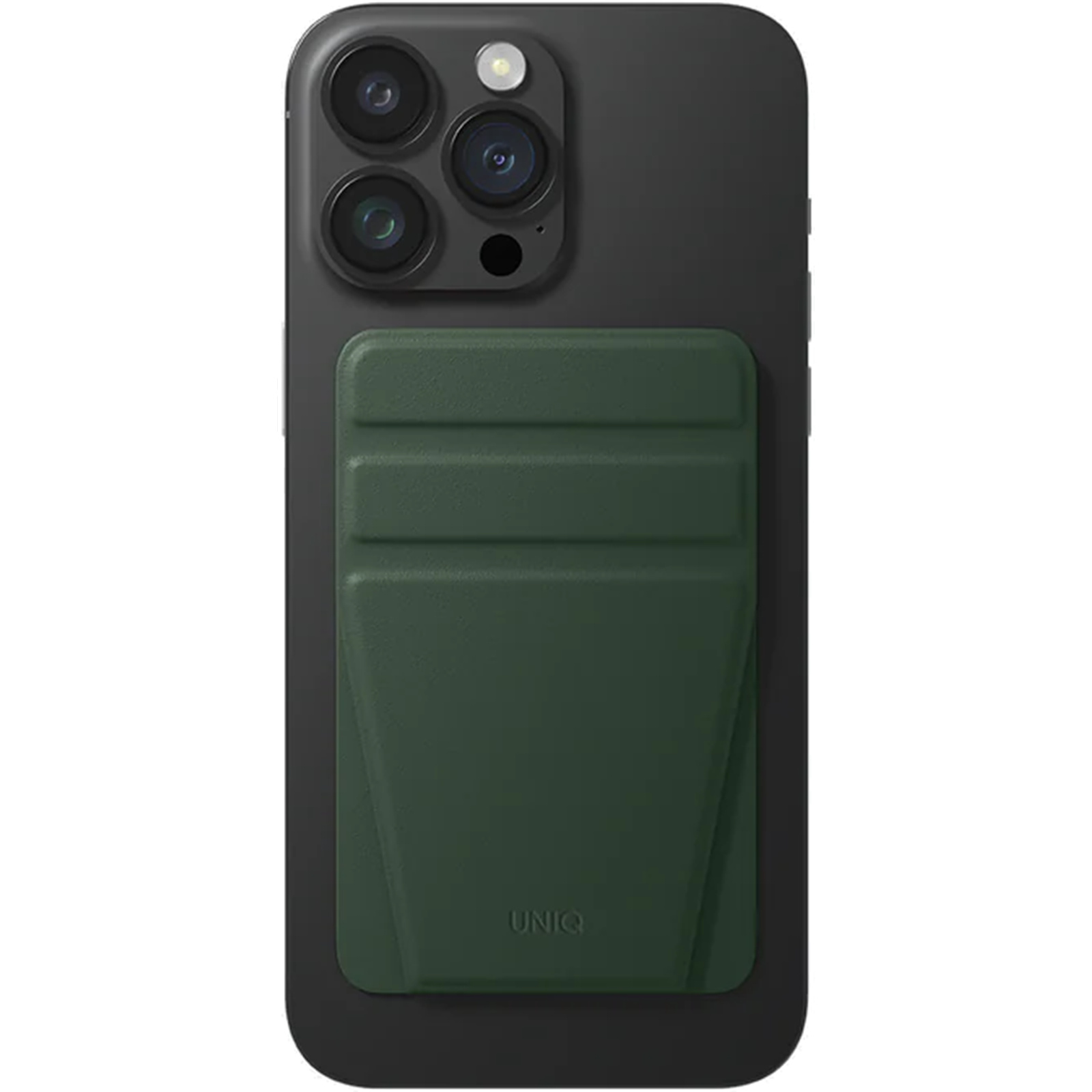Uniq Lyft Magnetic Snap-On Stand and Wallet Card Holder - Green Supports Dual Orientation with 5 Viewing Angles, Slim and Acessible Storage for Up to 2 Cards
