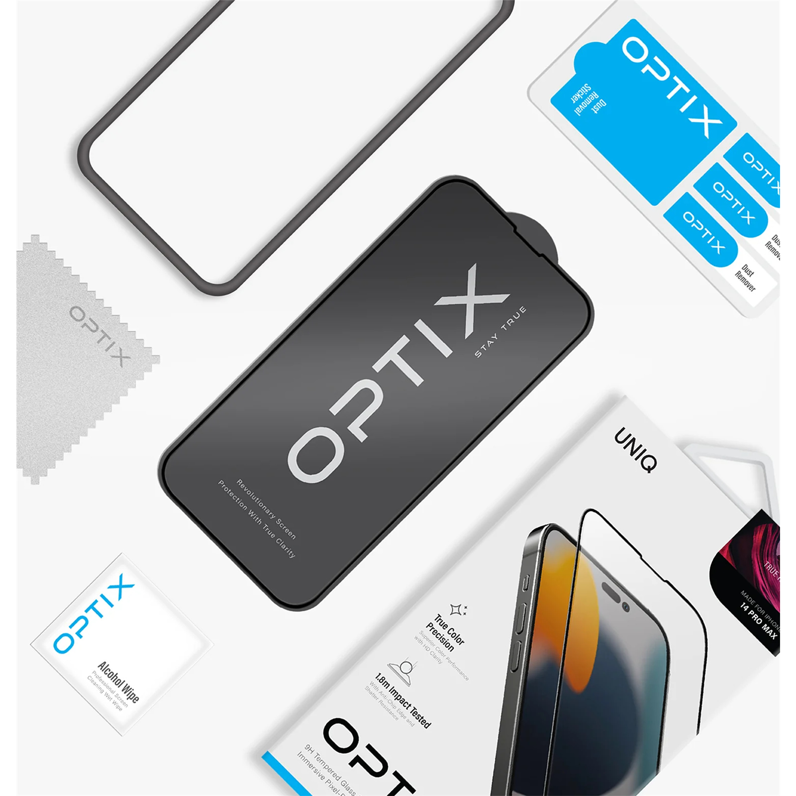 Uniq iPhone 16e/14/13/13 Pro Optix Vivid Tempered Glass Screen Protector - Clear 9H Tempered Glass - Ultra HD Pixel Display - Up to 1.8m Impact Tested - Oleophobic Anti-Fingerprint Coating - Anti-Dust Filter Protection - DustRepel Anti-Stat
