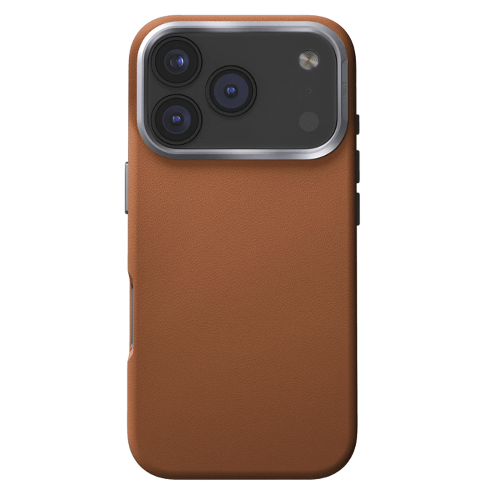 Uniq iPhone 17 Pro (6.3") 2025 Magclick Charging Lyden Case - Caramel Slim Premium Vegan Leather - Aluminum Camera Lens Bezel - Compatible with Magnetic Wireless Charging