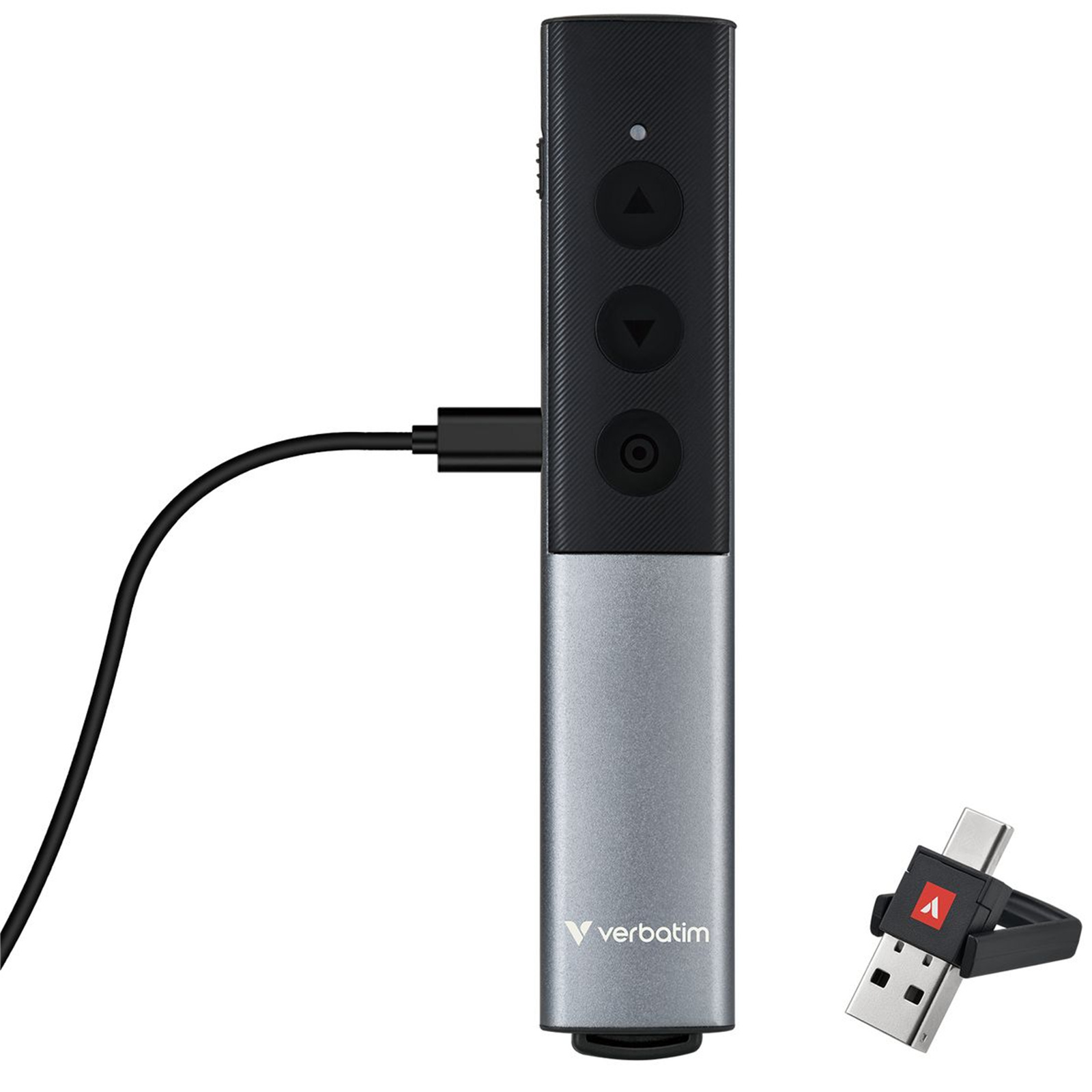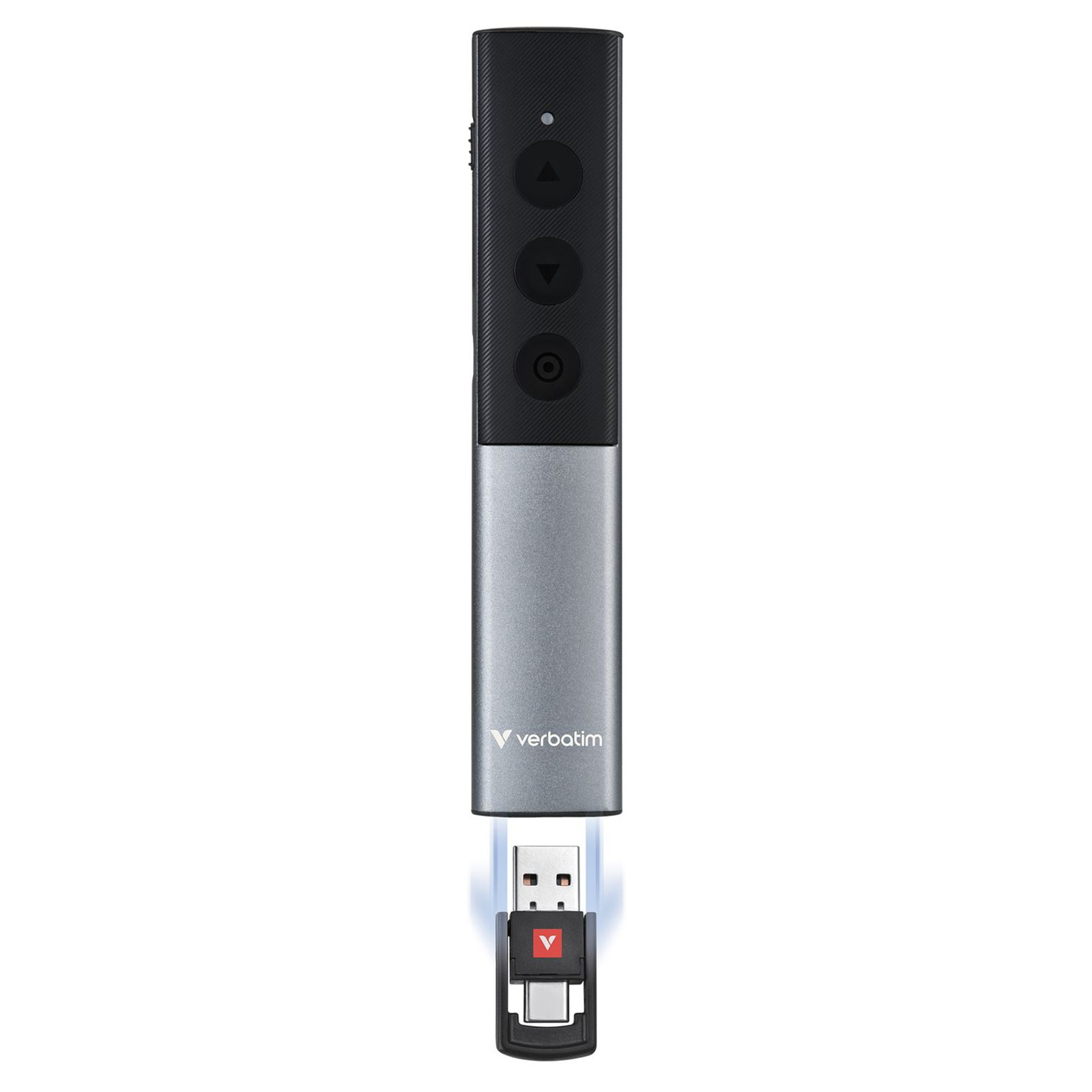 Use the Verbatim wireless presenter with a red laser pointer to elevate your presentations and exude professionalism in any setting. Whether in a conference room, classroom, or large meeting room, this device empowers professionals, educators, and students to present confidently. Its intuitive design and high-performance features ensure you'll capture your audience's attention and deliver polished presentations anywhere.