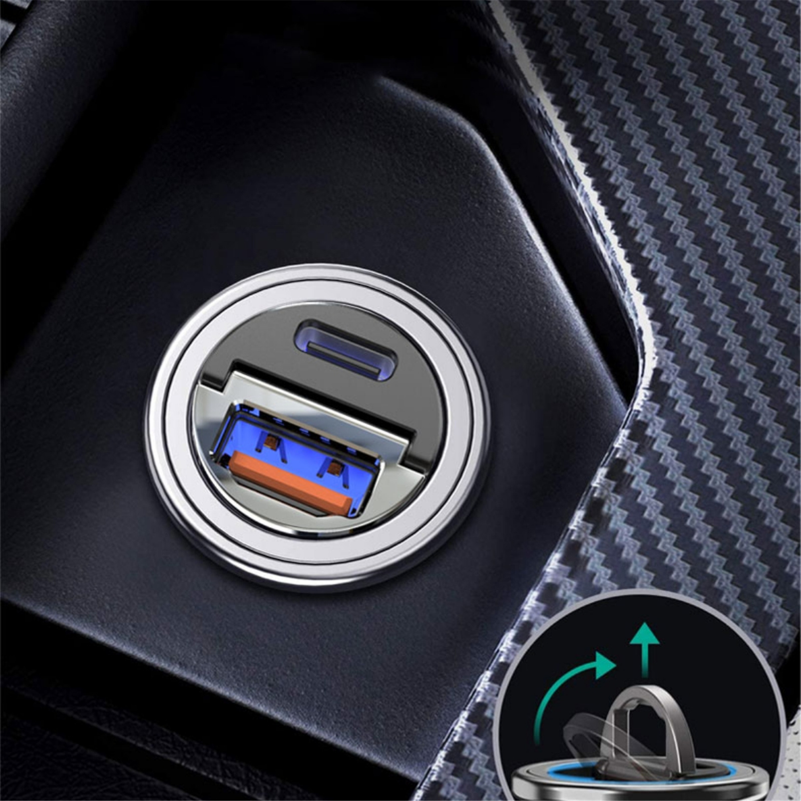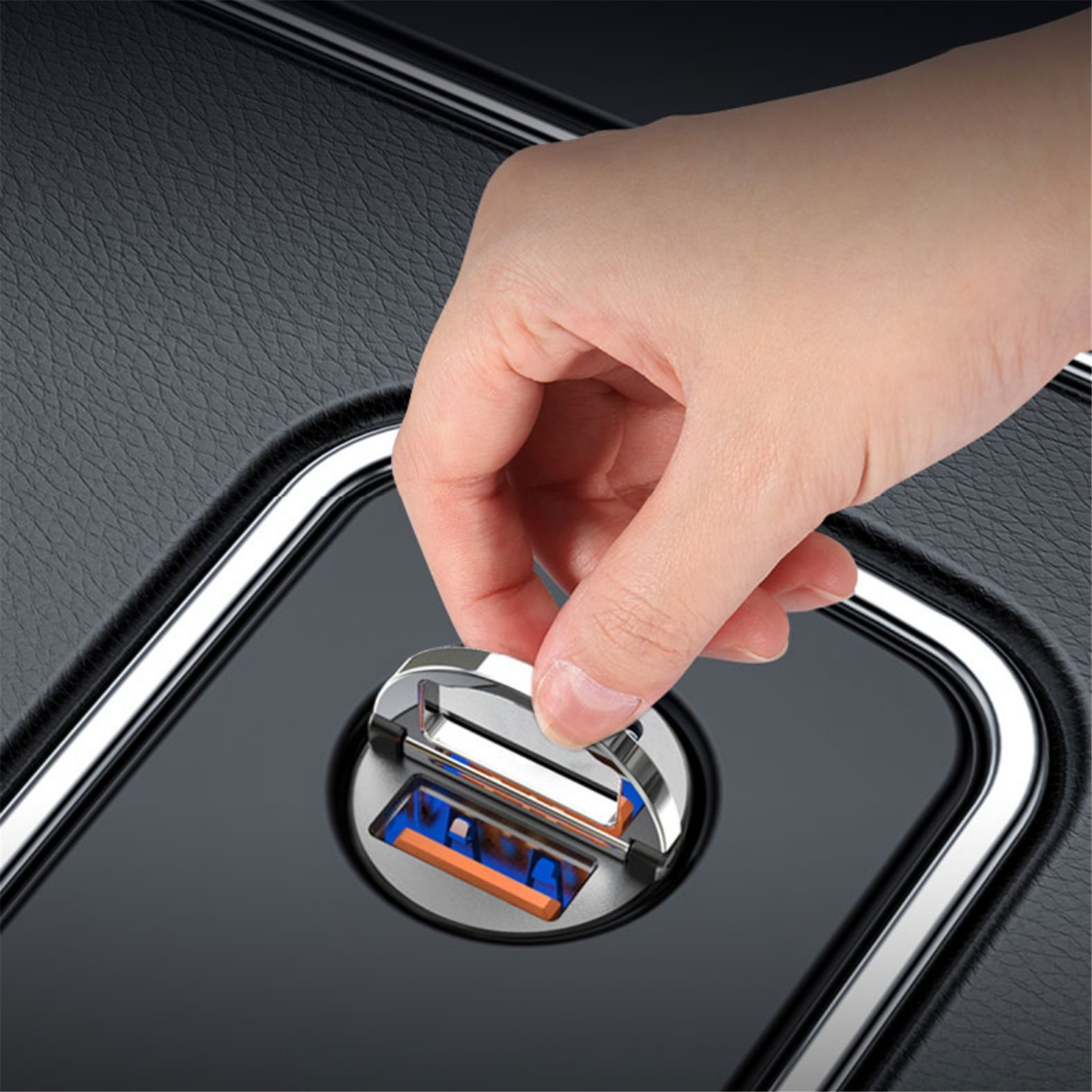 Unprecedented compactness that disappears beneath the auxiliary power outlet, offering a sleek and minimalist look.