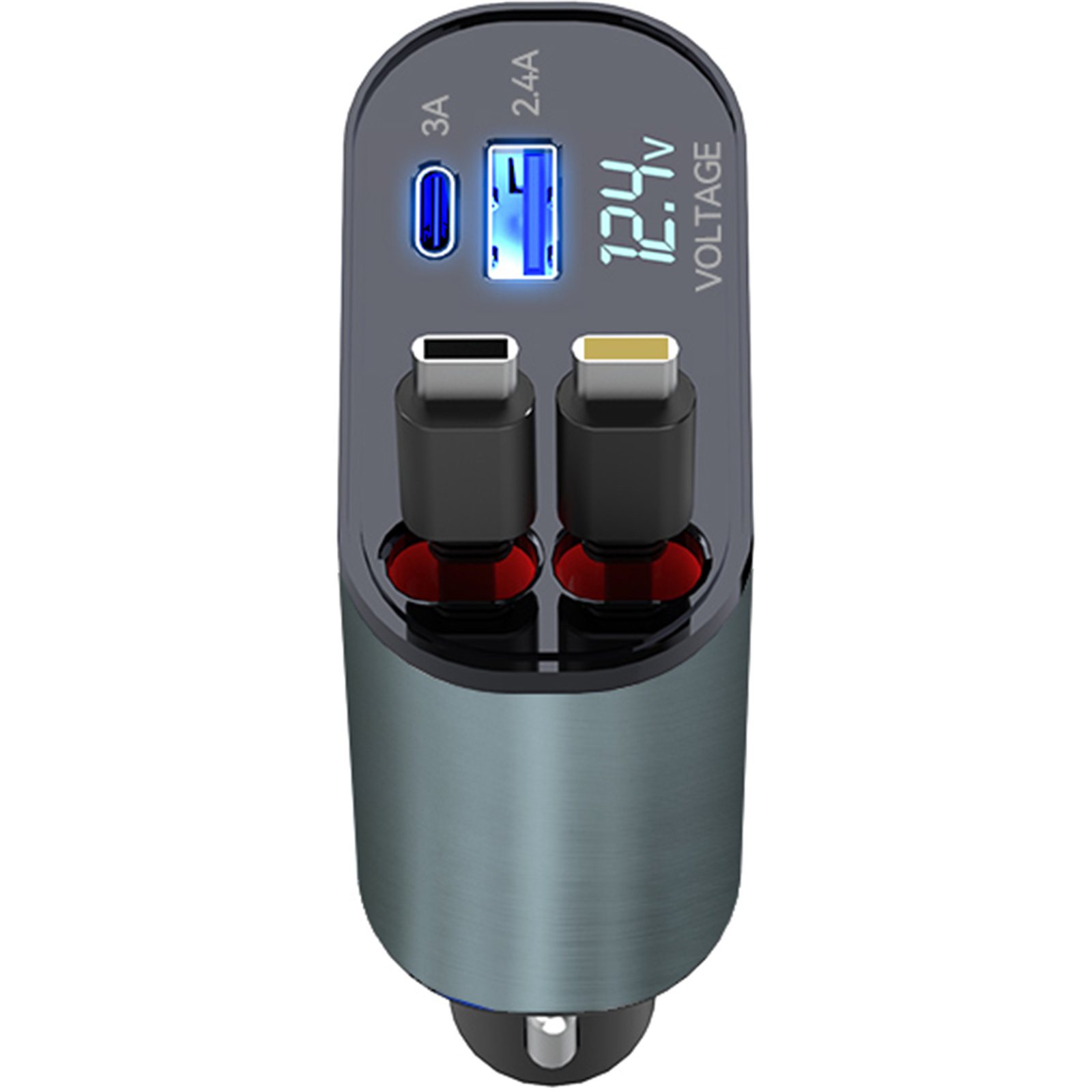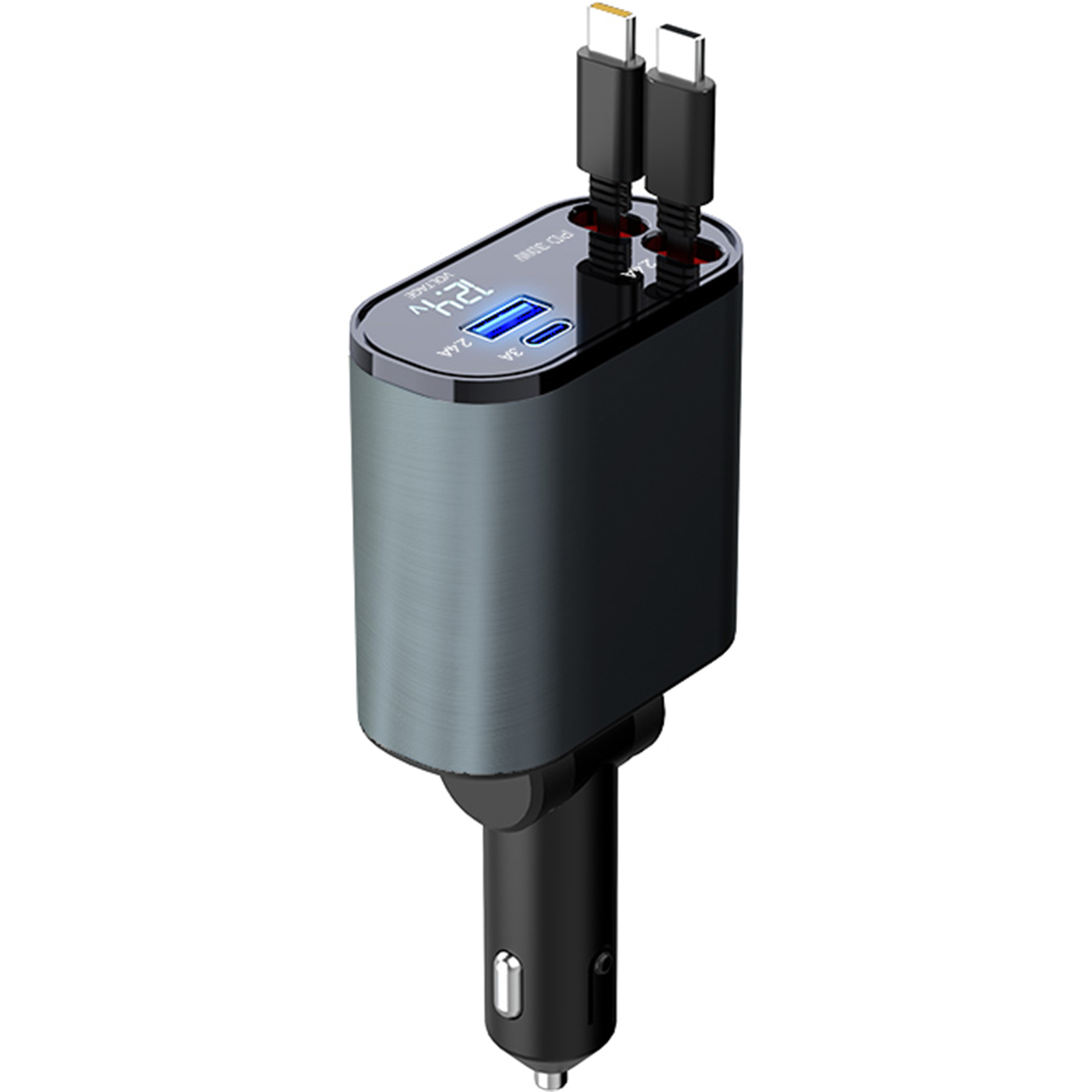 Valore AC207 4-IN-1 Car Charger with Bulit in retractable cables