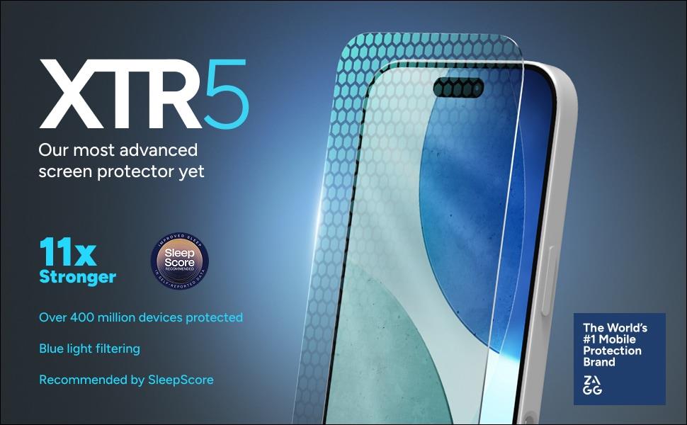 Protect your screen and your sleep with Glass XTR5, ZAGG's most advanced screen protection with Eyesafe® CPF60 advanced blue light protection. XTR5, fortified with Graphene, is 11x stronger.1 The Eyesafe® CPF60 technology supports eye comfort and sleep.2