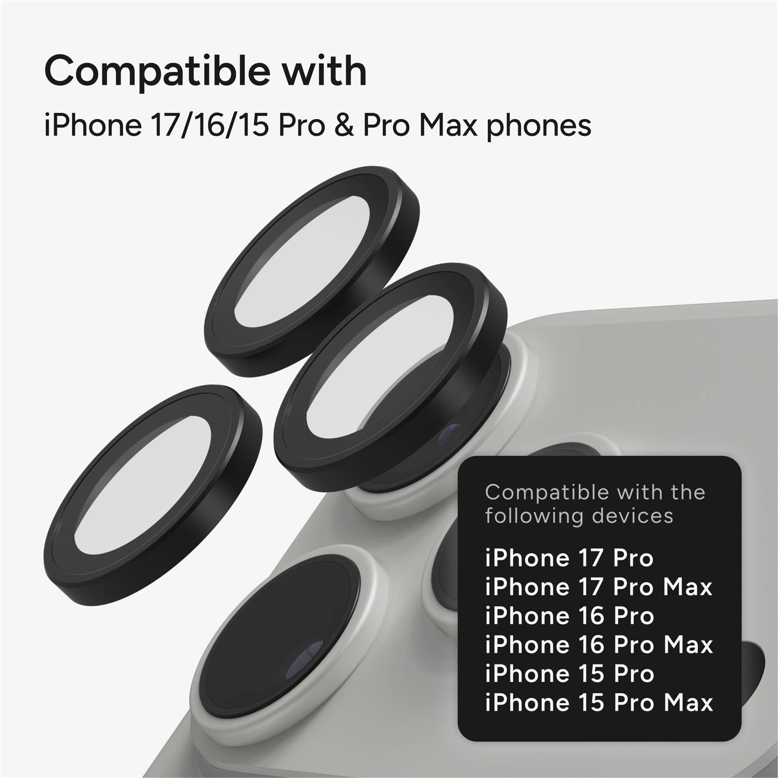 ZAGG 200118680 ZAGG InvisibleShield Premium CameraRings Lens Protector, Black, Apple iPhone 17 Pro, iPhon