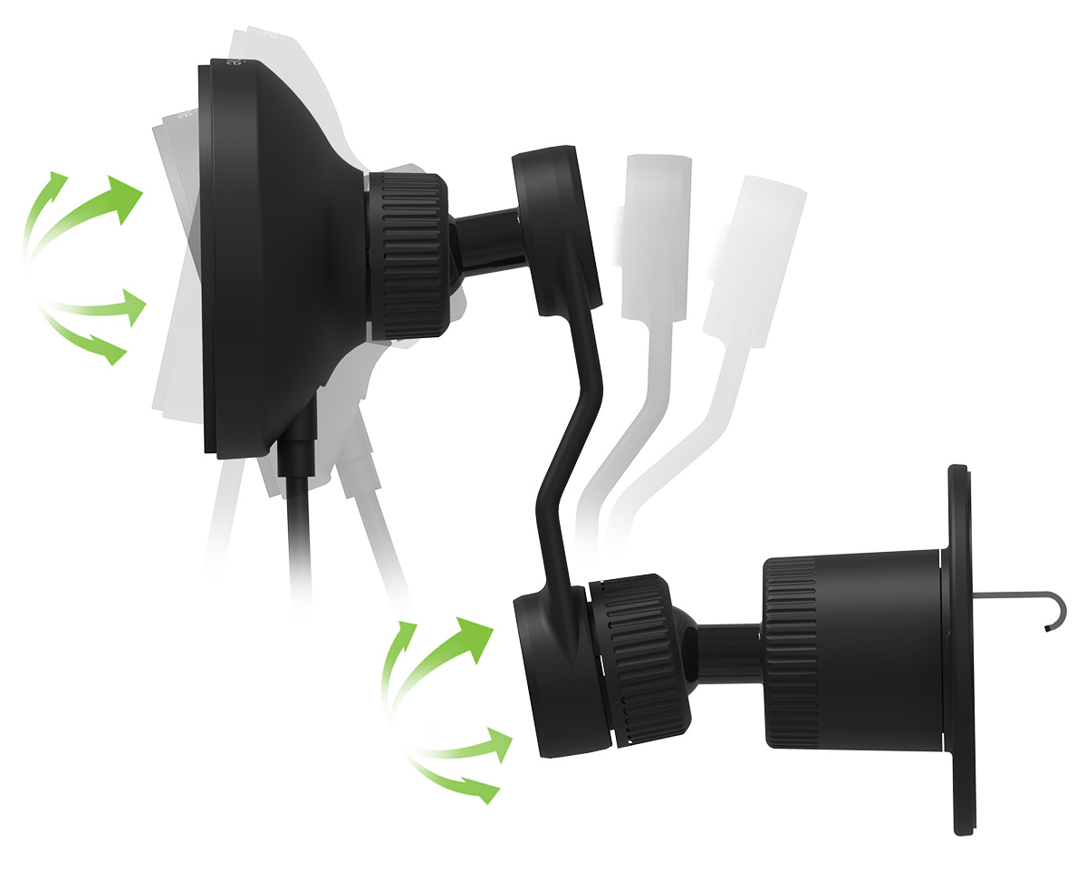 Charge your phone and get up to 7.5W of wireless power while you drive. The snap+ wireless charging vent mount holds your phone securely where you can see it while it charges. It comes with an adjustable extension arm that lets you position your phone above or below the vent and adjust it to the perfect viewing angle.