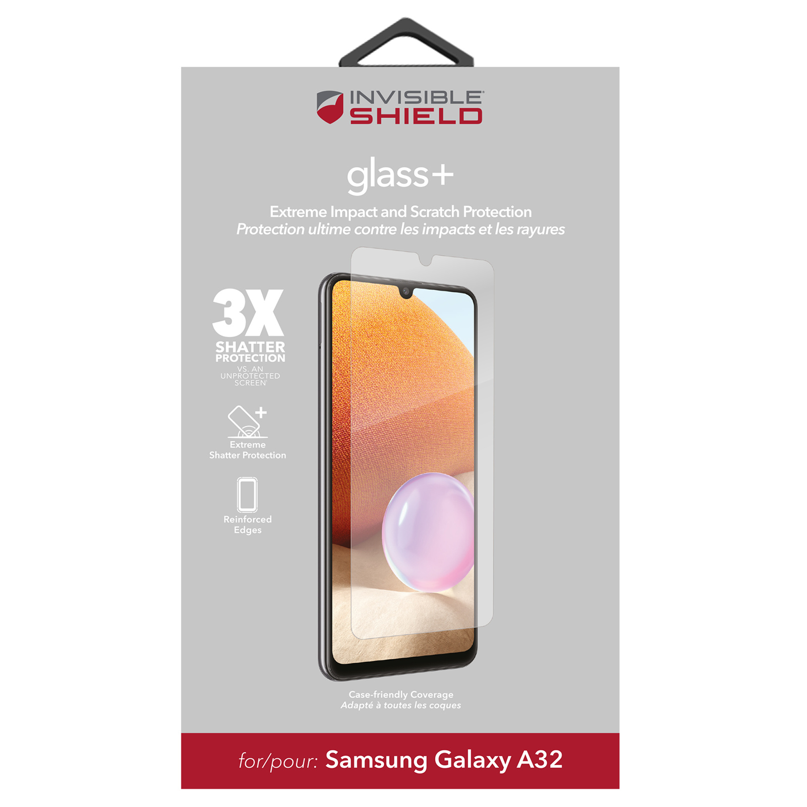 ZAGG Glass Screen Protector, InvisibleShield Galaxy A32 4G (2021) glass+ Extreme Scratch & Shatter Protection, Smudge-free, Anti-microbial treatment, Lifetime Warranty