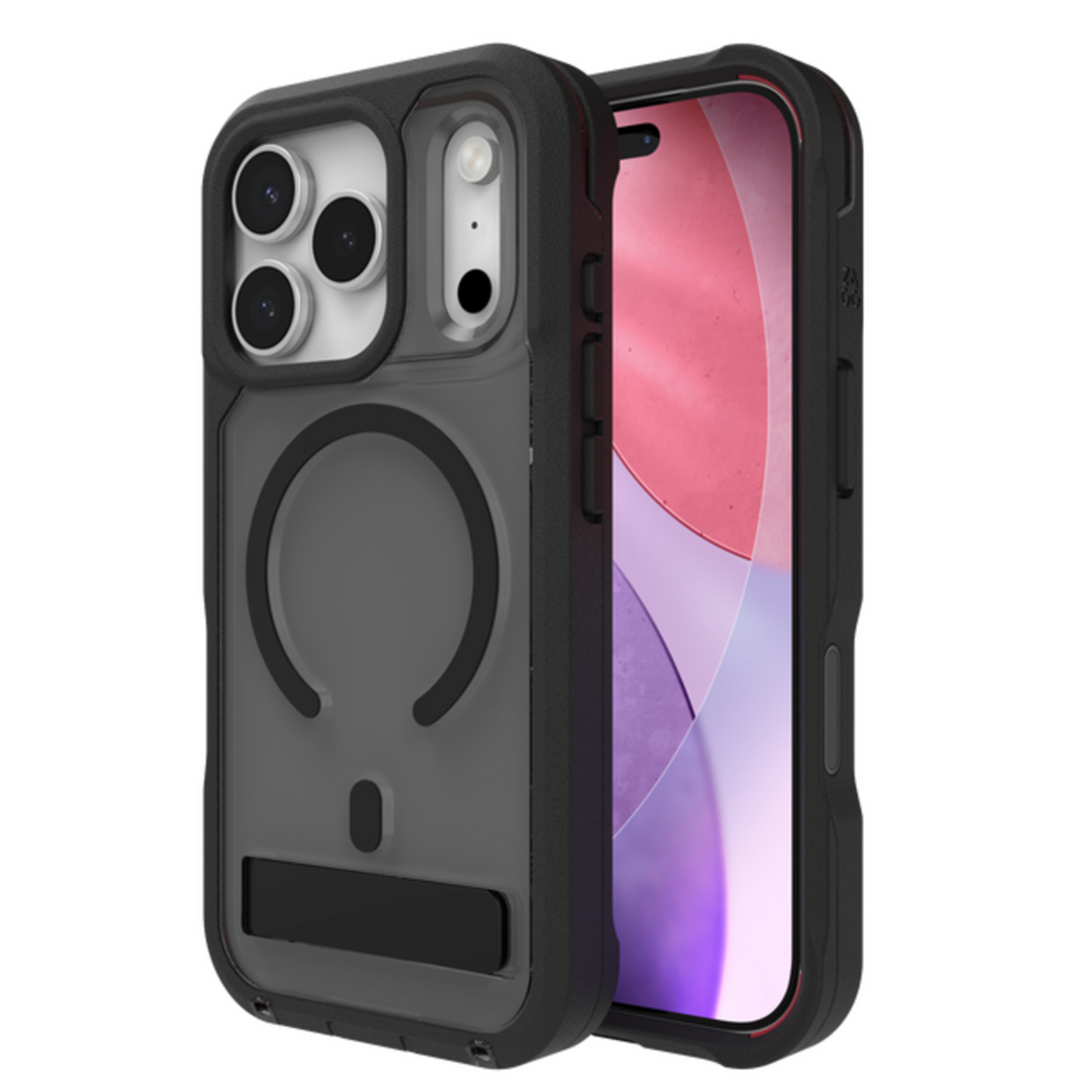 ZAGG 702320850 Rainier Snap Kickstand + Camera Control Button Case For iPhone 17 Pro Max, Smoke Black