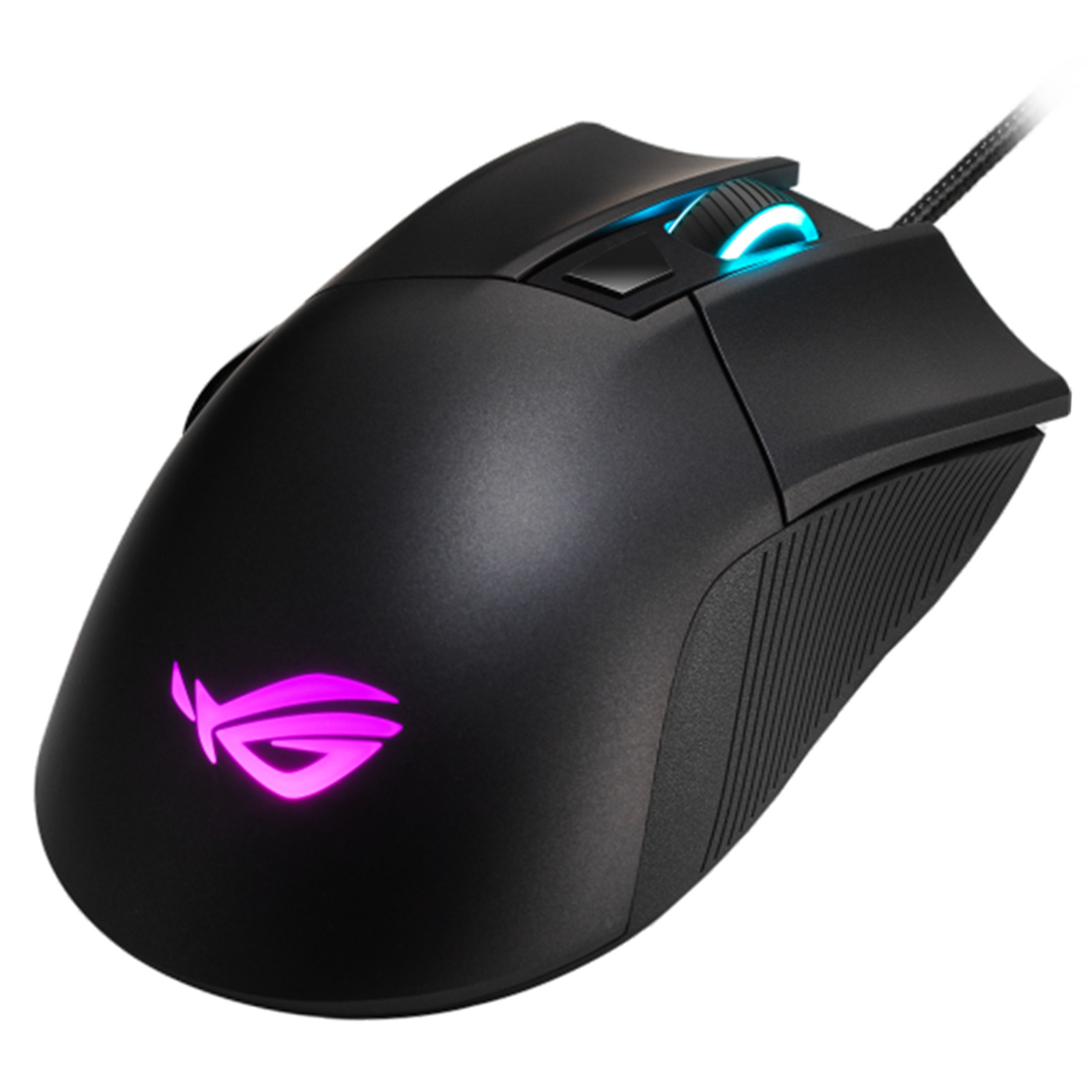 - Classic ROG Gladius ergonomics, with discrete left and right buttons, lightweight design and durable non-slip side grips etched with the iconic ROG totem