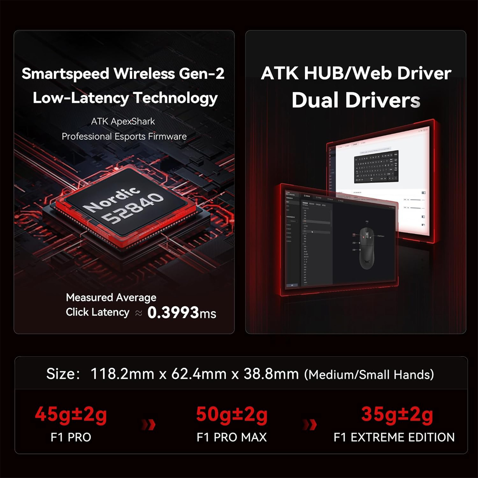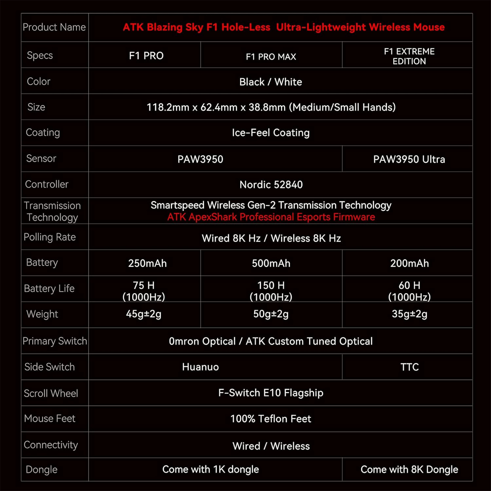 ATK Blazing Sky F1 Extreme Ultra Lightweight Wireless Mouse - Black PAW3950 Ultra - 8K Polling - 35g