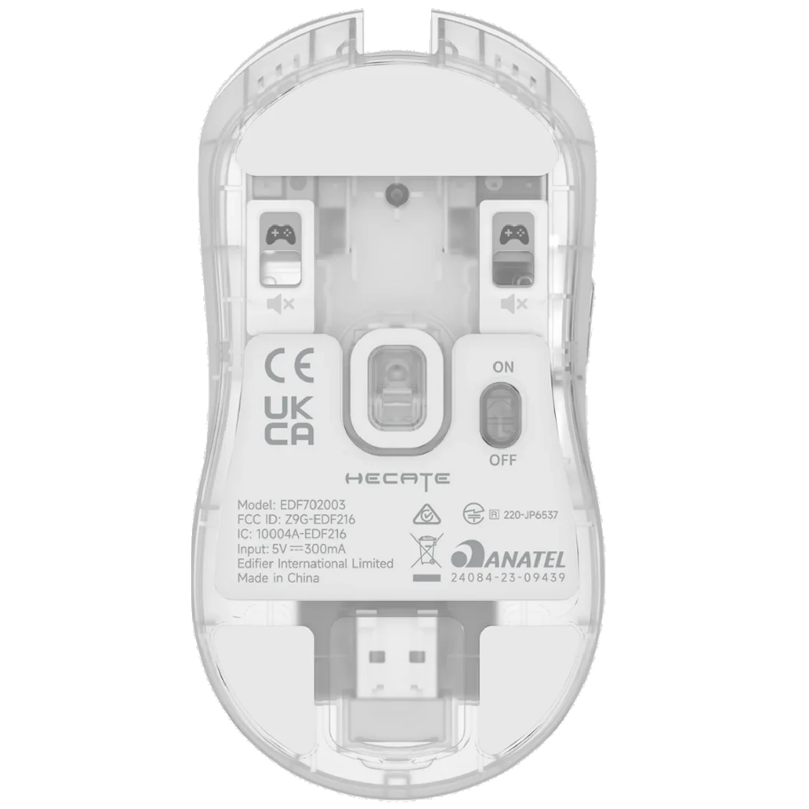 Edifier HECATE G3M Pro Tri-Mode Wireless Gaming Mouse - Transparent White PAW3395 - Silent Click Mode - 63g - Battery Life up to 70 hours - Ultra-Low Latency 1ms 2.4GHz Wireless - Bluetooth Ready - USB-C