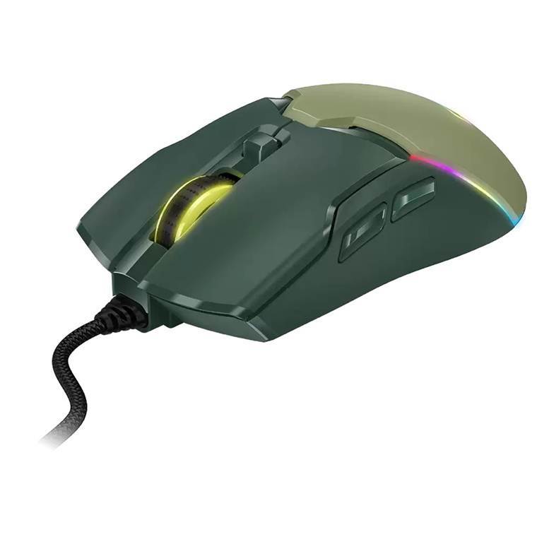 Step into battle with the Scorpion M700 - a lightweight wired gaming mouse built for fast-paced online action. Available in bold black and army green, it delivers smooth handling and precise tracking, enhanced by dynamic RGB lighting that ignites your desktop setup.