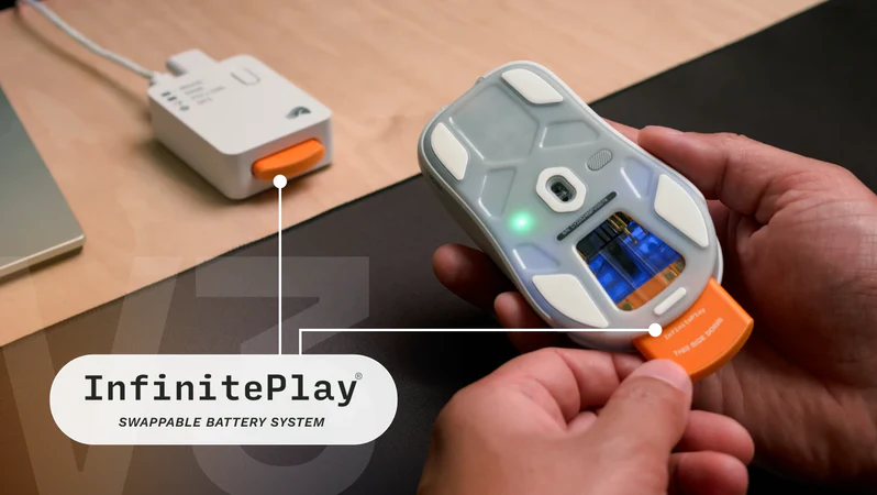 Model O3 Wireless featuring InfinitePlay is the first true wireless gaming mouse that you never need to plug in.