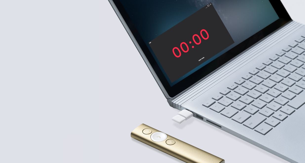 Spotlight connects instantly via USB receiver or Bluetooth®. It's plug-and-play on most platforms and compatible with all popular presentation apps. Plus, it's fully rechargeable1 and boasts a 100-foot operating range.