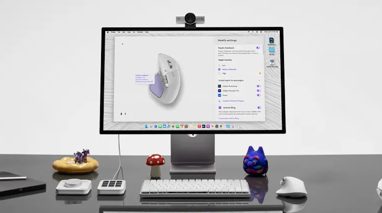 with customizable* haptic feedback on specific actions, shortcuts, notifications enhancing productivity. Feel the snap of images snapping onto grids, notifications, desktop switching, slider adjustments and more. Customize feedback, intensity, and add plugins for 3rd party apps with Logi Options+ for a more personalized workflow. Find out more on logi.com/haptics
