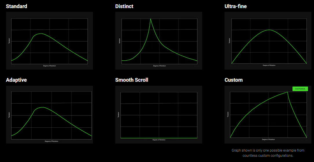 Refine the tactile feedback of the scroll wheel even further by individually adjusting the uptick and downtick curve of the scroll wheel to be gentler or more pronounced.
