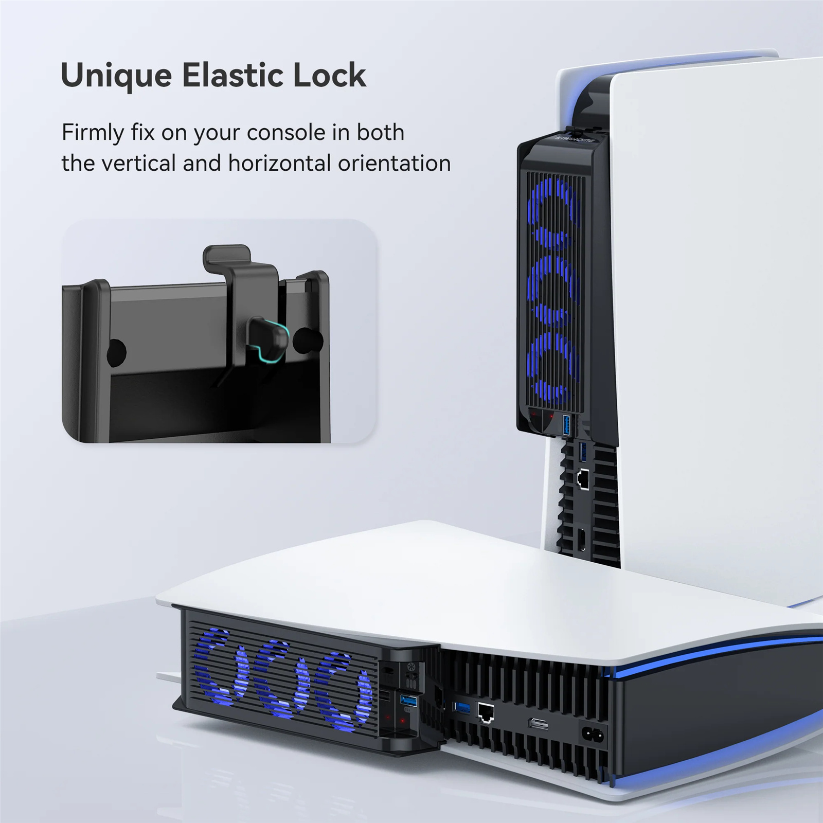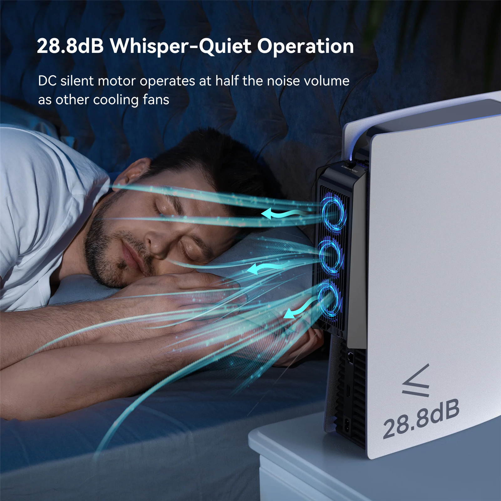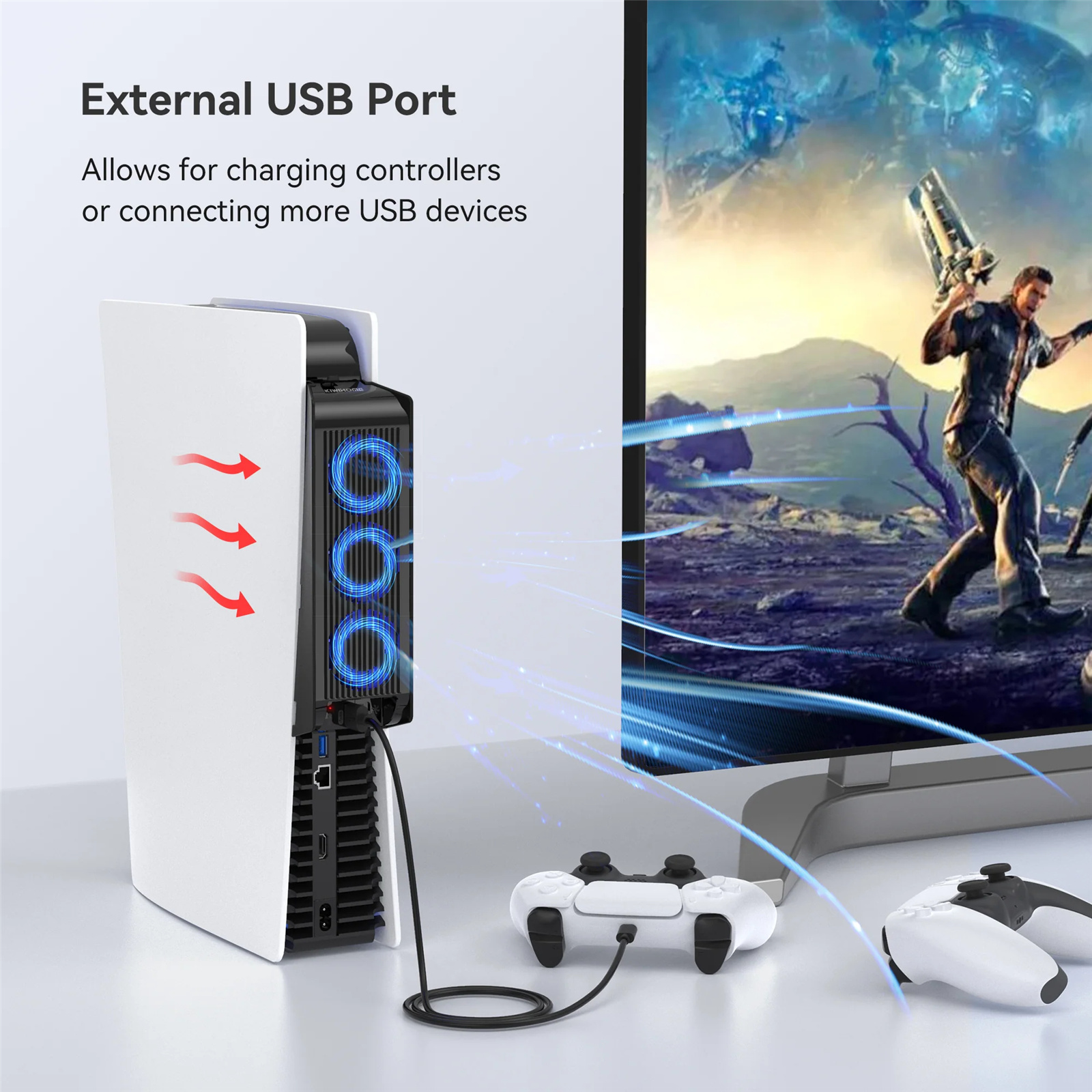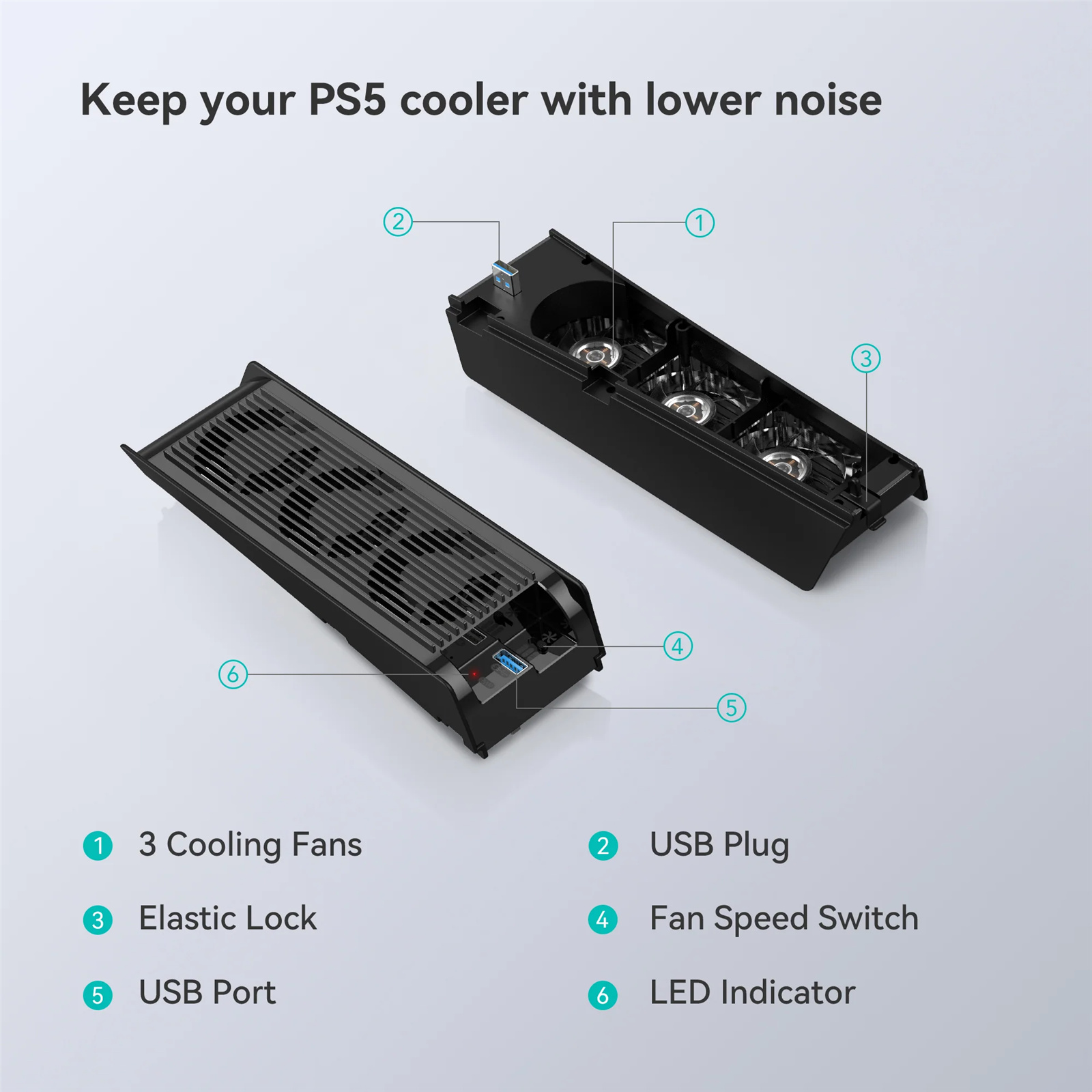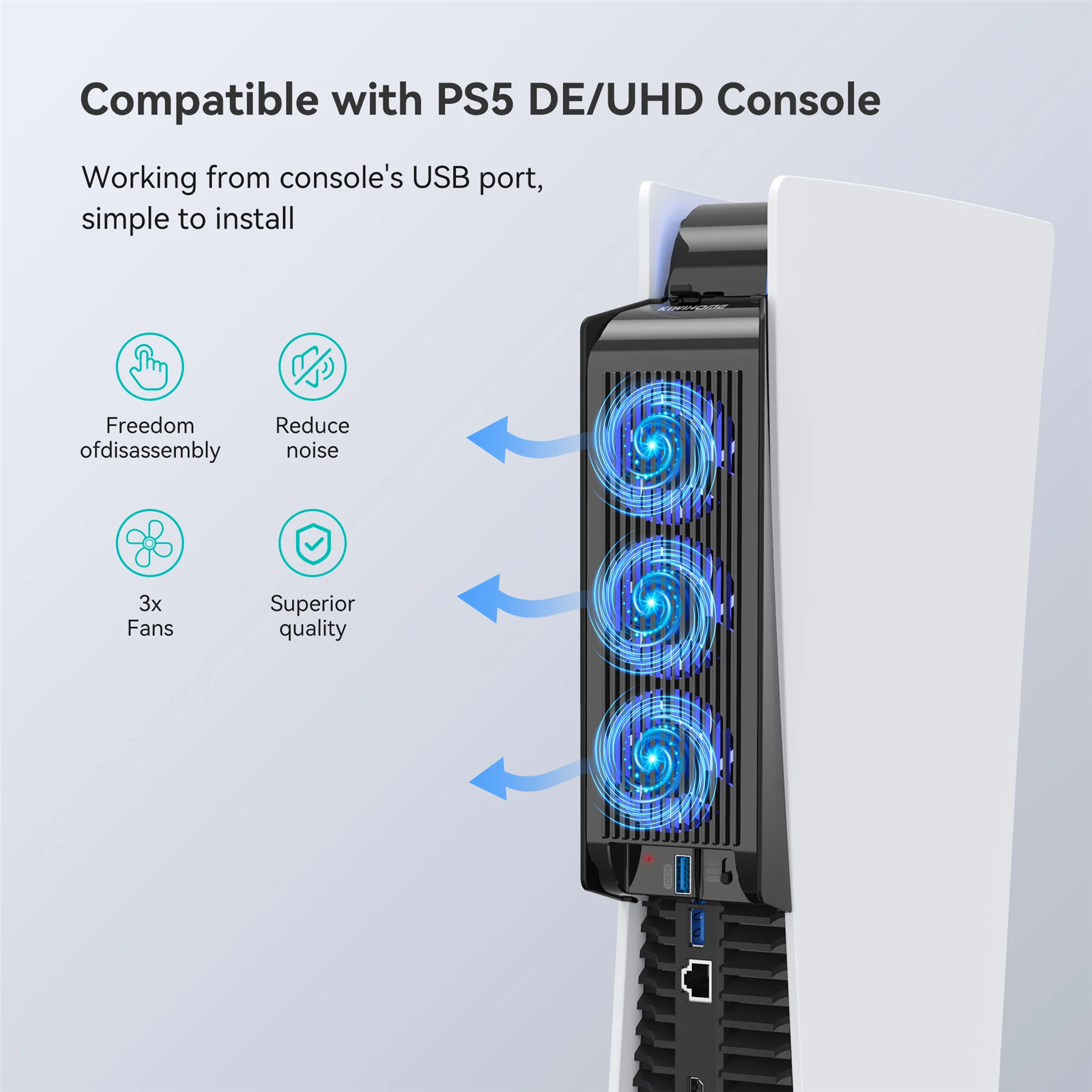 This upgraded PS5 cooling fan is designed to push air out of the console and prevent overheating, with 3 improved turbo fans to keep your PS5 Digital Edition and PS5 Ultra HD game consoles running smoothly and quietly.
