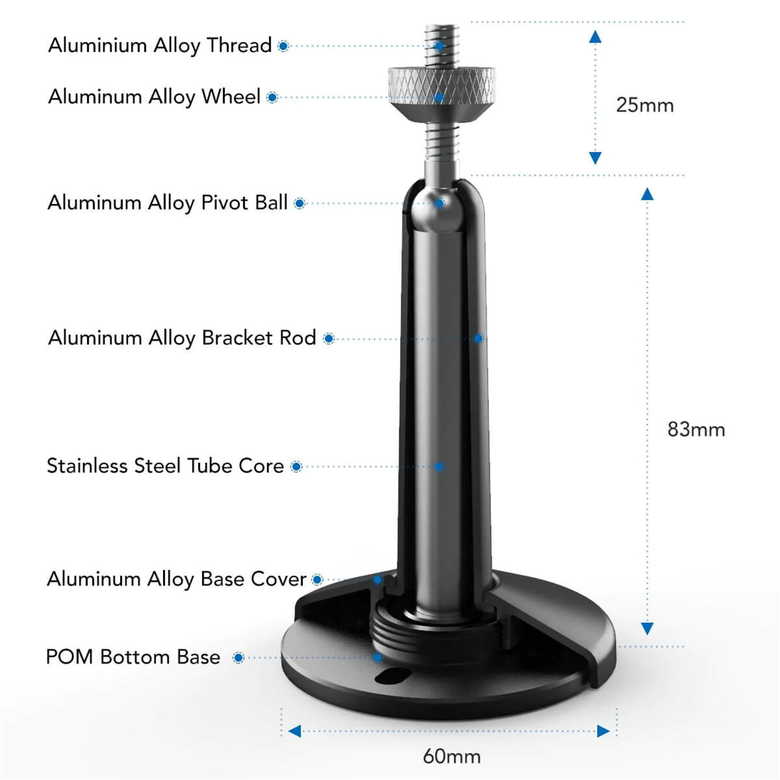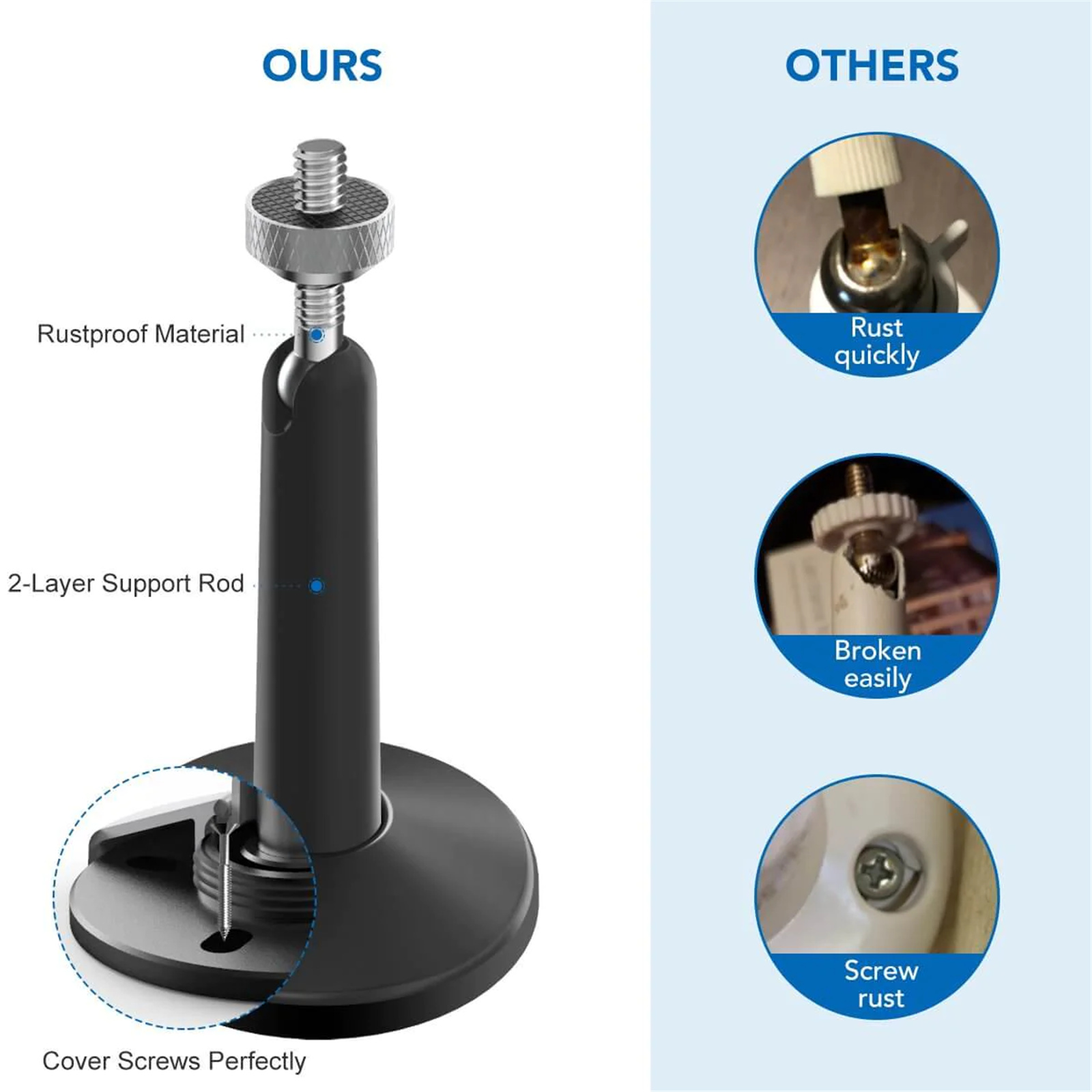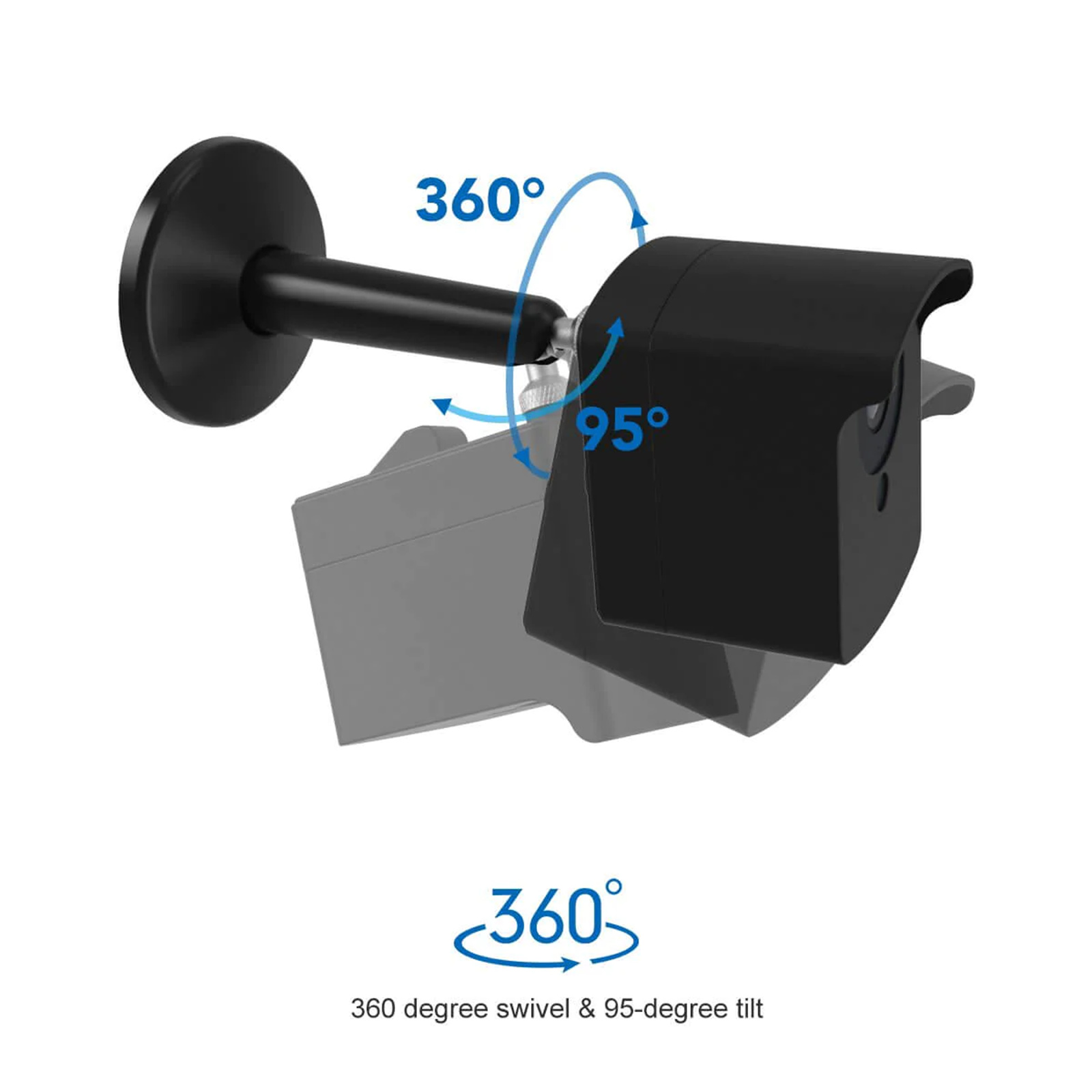 Since the 2-layer support rod, this security camera mount is stable and strong enough to hold your camera, prevent it from falling down. Also, it is easily adjustable with a 360-degree swivel & 95-degree tilt, allowing the flexible positioning of your camera