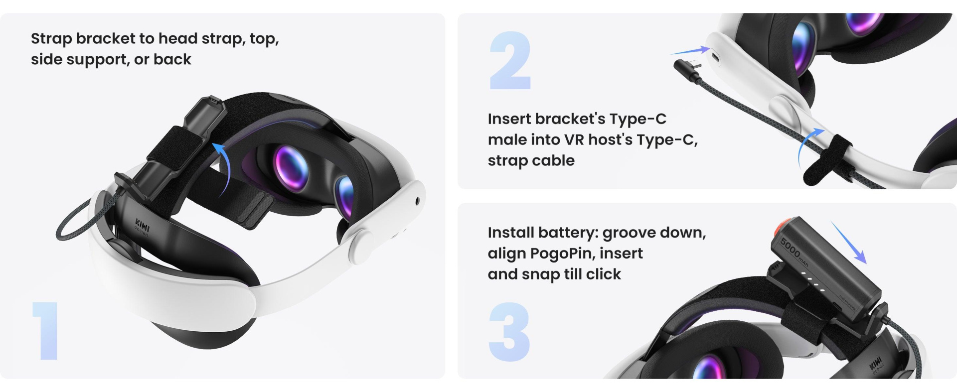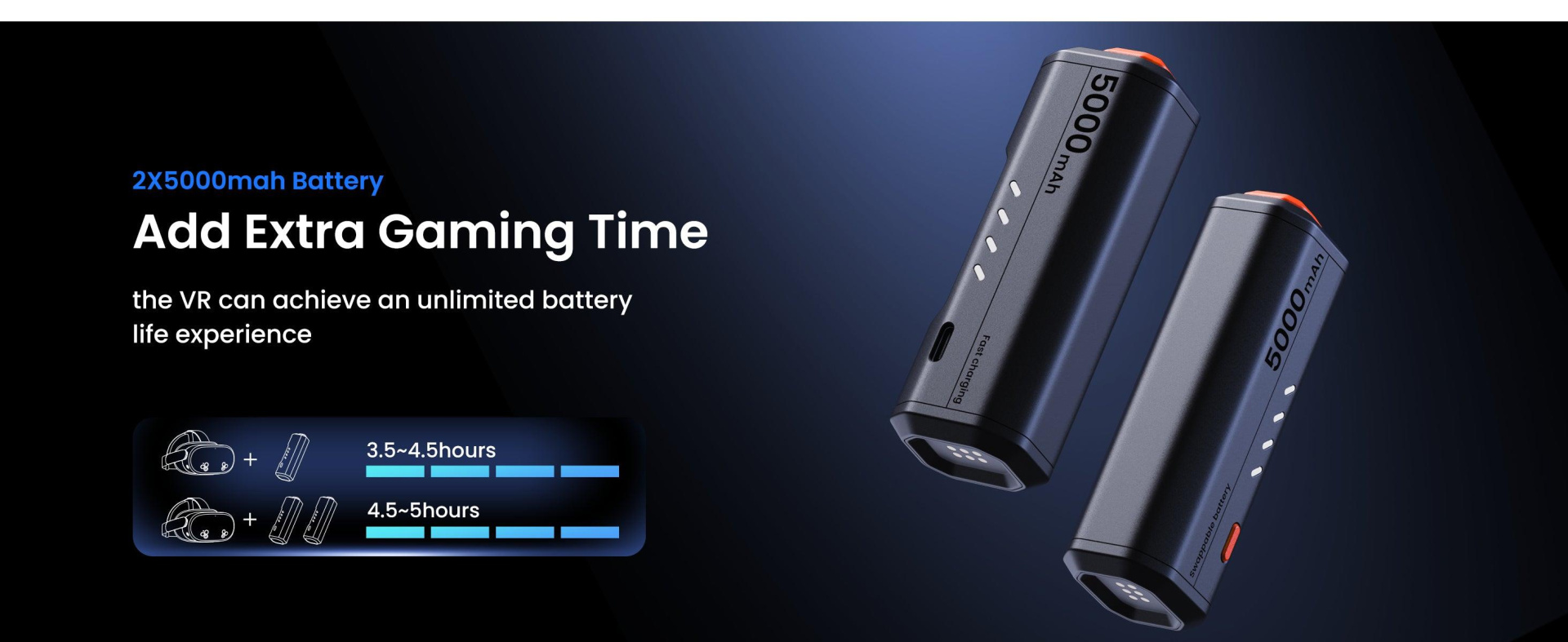 - Lightweight & Comfortable - Each battery weighs just 105g, and even with the VR head strap attached, the setup is still much lighter than conventional battery packs.