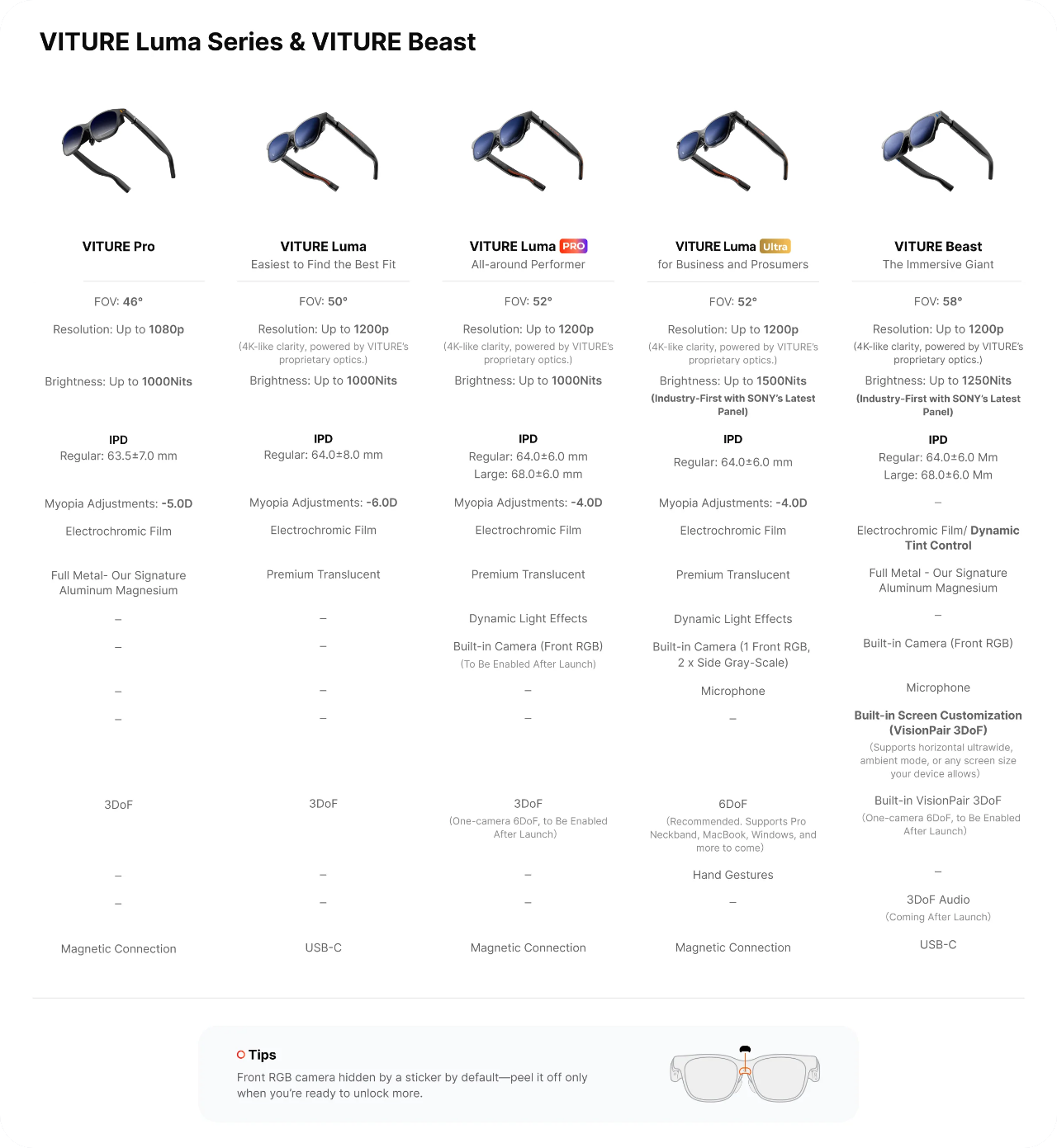 These XR/AR glasses also accommodate nearsighted users with -4.0D myopia adjustments, feature our signature electrochromic film lenses and new dynamic lighting effects, and are houses in a redesigned premium matte translucent frame.
