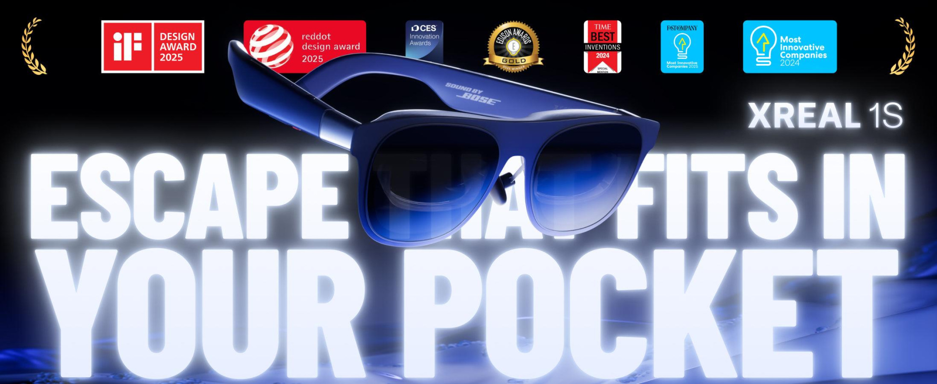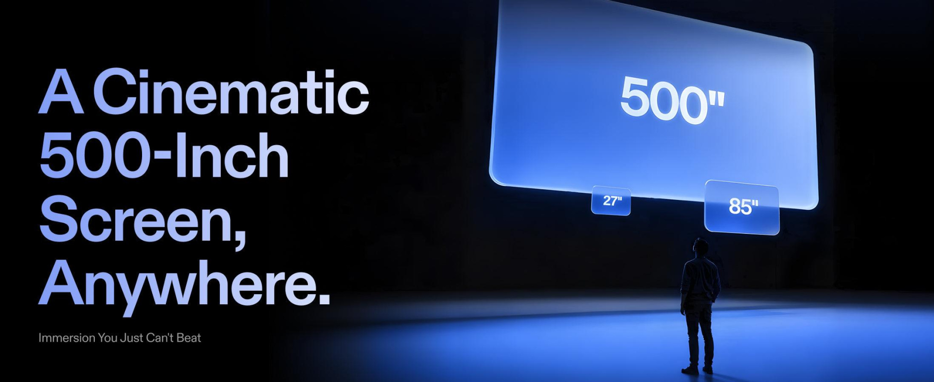 XREAL 1S projects the equivalent of a 500-inch display you can take anywhere - about the size of five 100'' put together. It's a pocket-sized cinematic escape delivering a theater-scale experience wherever you go.