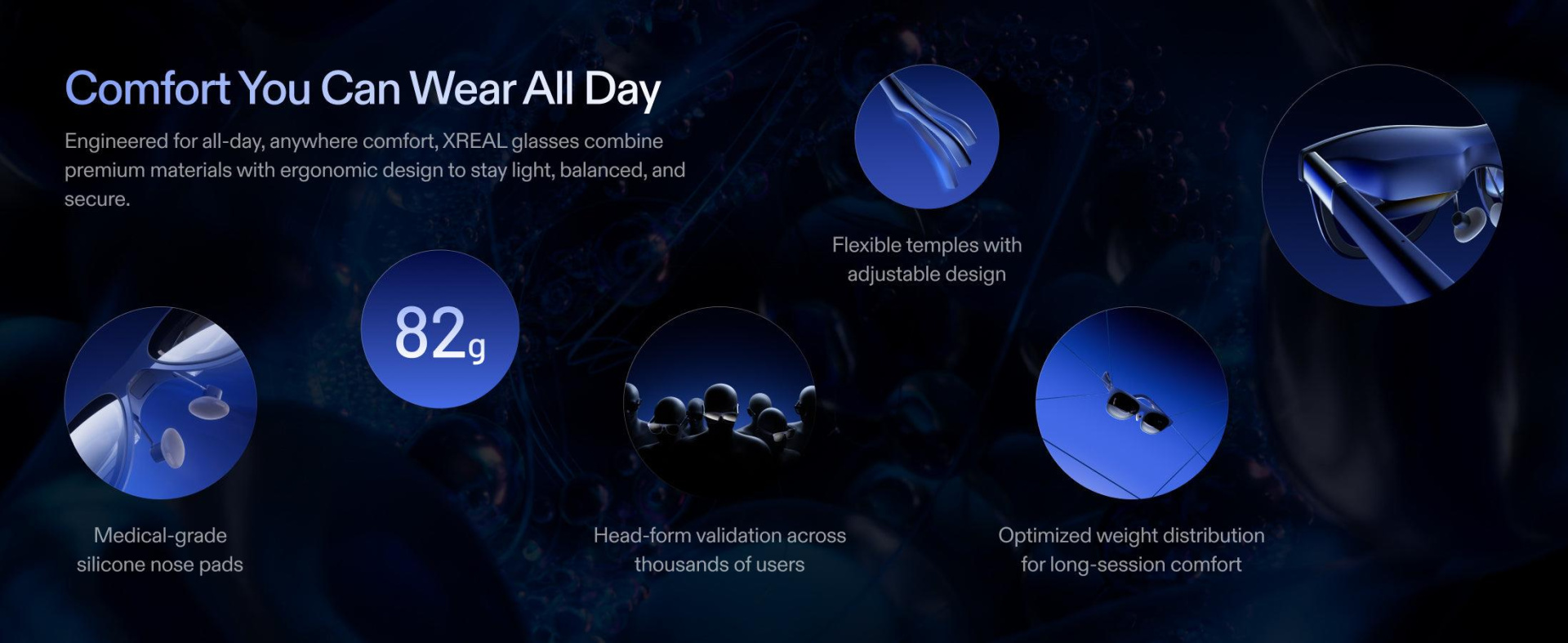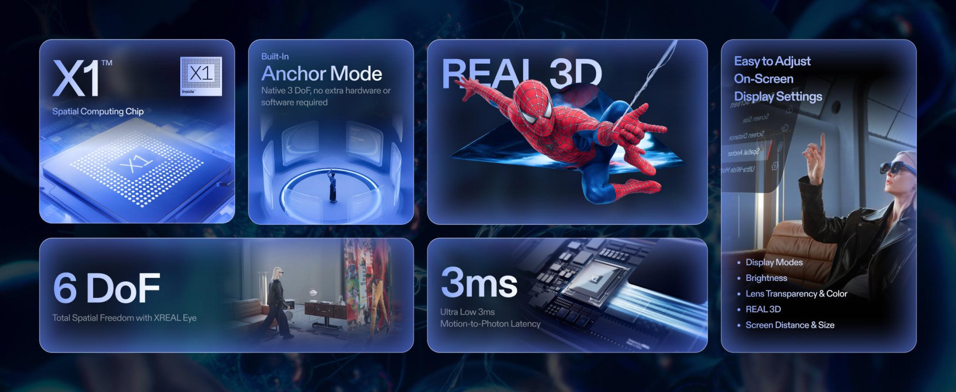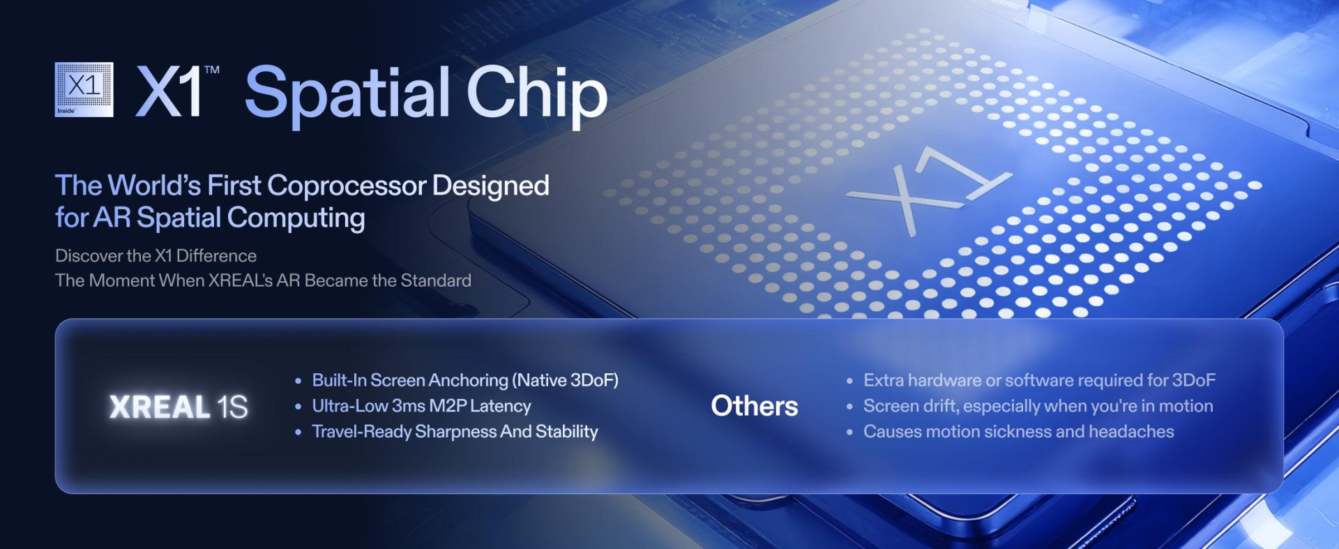 The custom X1 AR co-processor is built for spatial computing, enabling advanced features like built-in screen anchoring and real-time 3D processing. The X1 chip delivers high processing power for ultra-stable, distortion-free visuals and keeps the experience smooth and responsive.