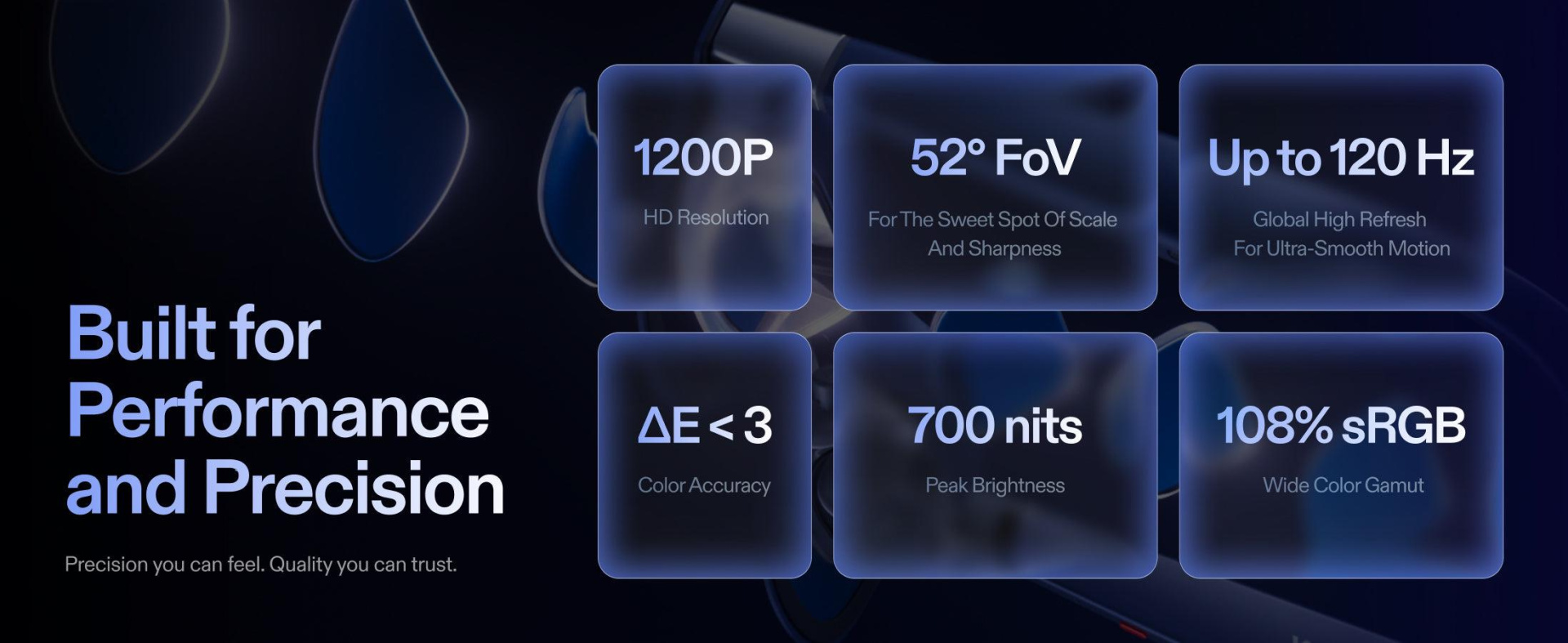 Full HD 1920×1200 resolution per eye with a wide 52° field of view provides a crisp, "sweet spot" balance of clarity and scale. Up to 120Hz refresh rate ensures ultra-smooth motion for fast-action gaming or video.