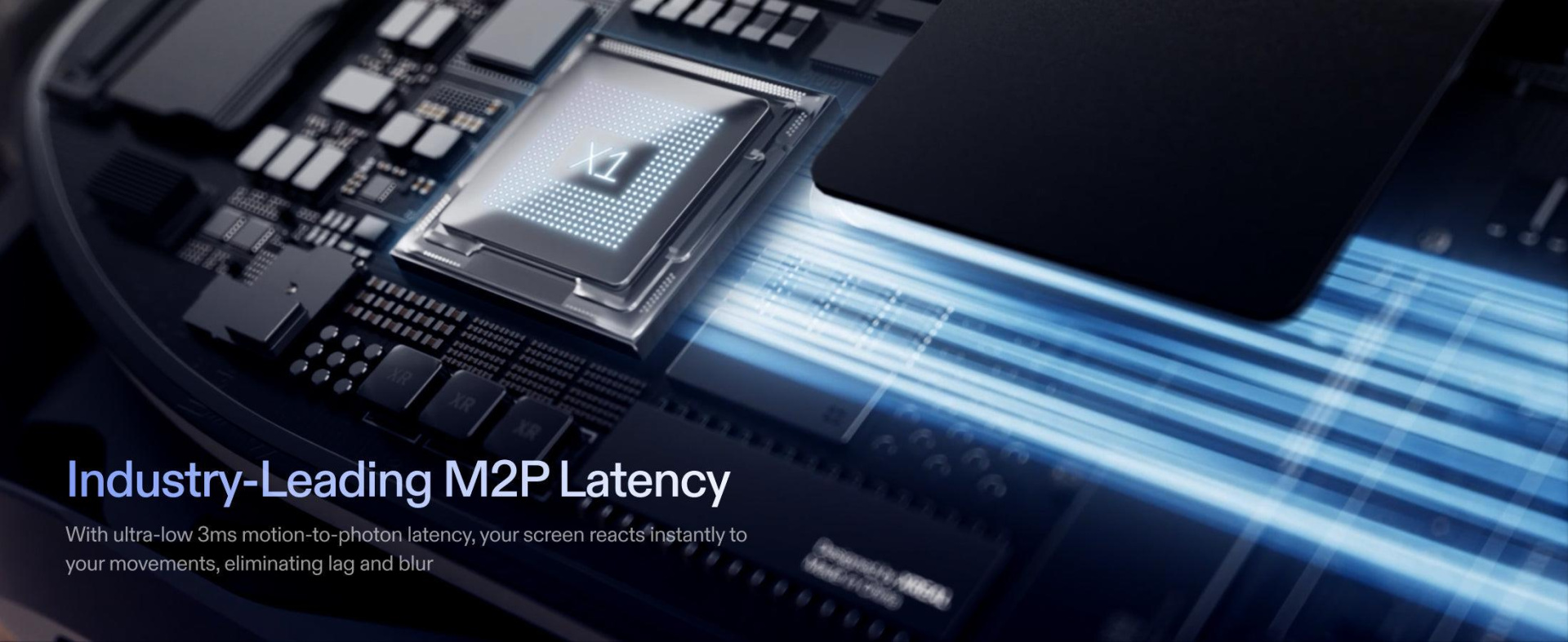 Industry-leading 3ms motion-to-photon latency means every head movement or action is mirrored almost instantly on screen. This extremely low lag minimizes motion blur and keeps fast-paced content feeling natural, which elevates comfort and immersion - especially when you're on the move.