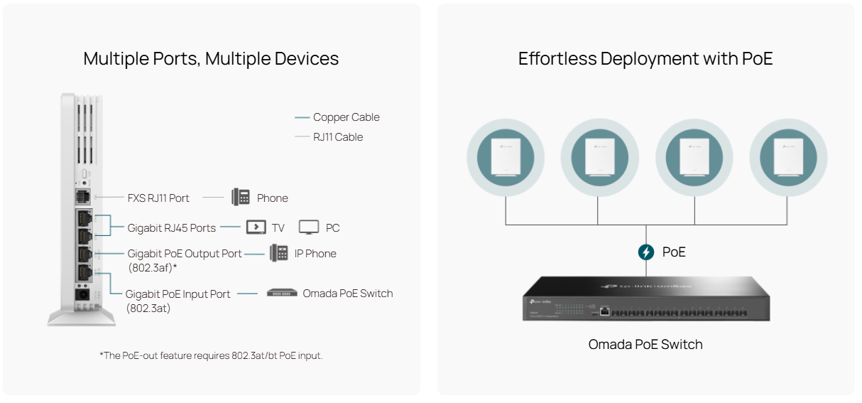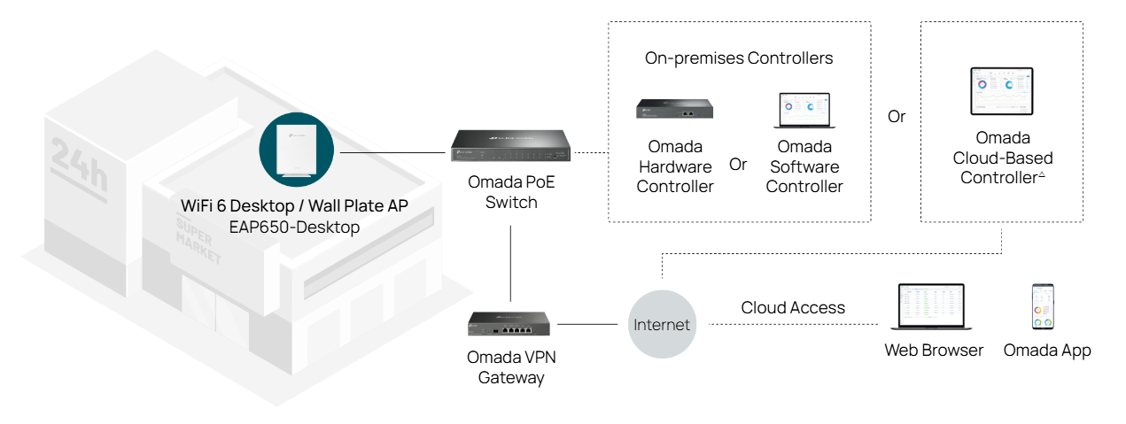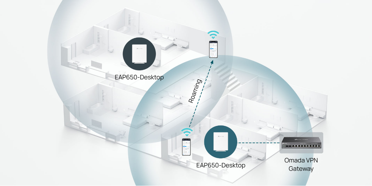 [3]Seamless Roaming, and Captive Portal require the use of Omada SDN controllers.