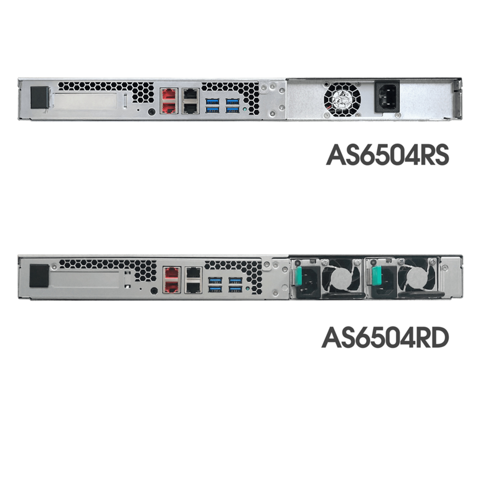 Asustor Lockerstor 4RD AS6504RD 1U Rackmount 4-Bay NAS Intel Quad Core Atom C3538 2.1GHz - 8GB RAM (128GB Max) - 2x 2.5GbE - 2x 1GbE - 1x PCIe - 4x USB - Redundant Power Supplies - 3Y Warranty - 4 Free Camera Licenses (64 Licenses Max)