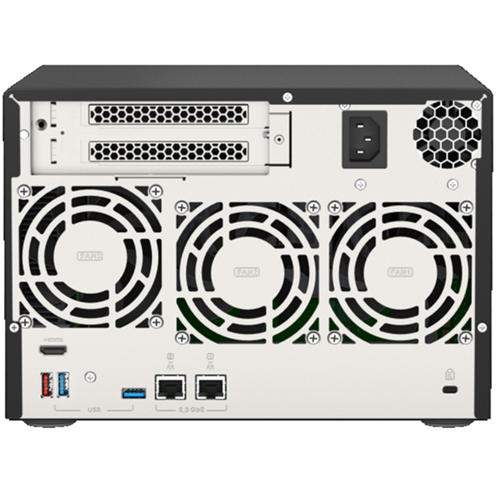 QNAP TVS-675-8G Business 6-Bay Desktop NAS Server, 8-core Upto 2.5GHz 8GB DDR4 (64GB Max), 2xM.2, 2x2.5 GbE, 2xPCIe, 3x USB, 1x HDMI, 3 Years Warranty, Come with 8 Camera Licenses