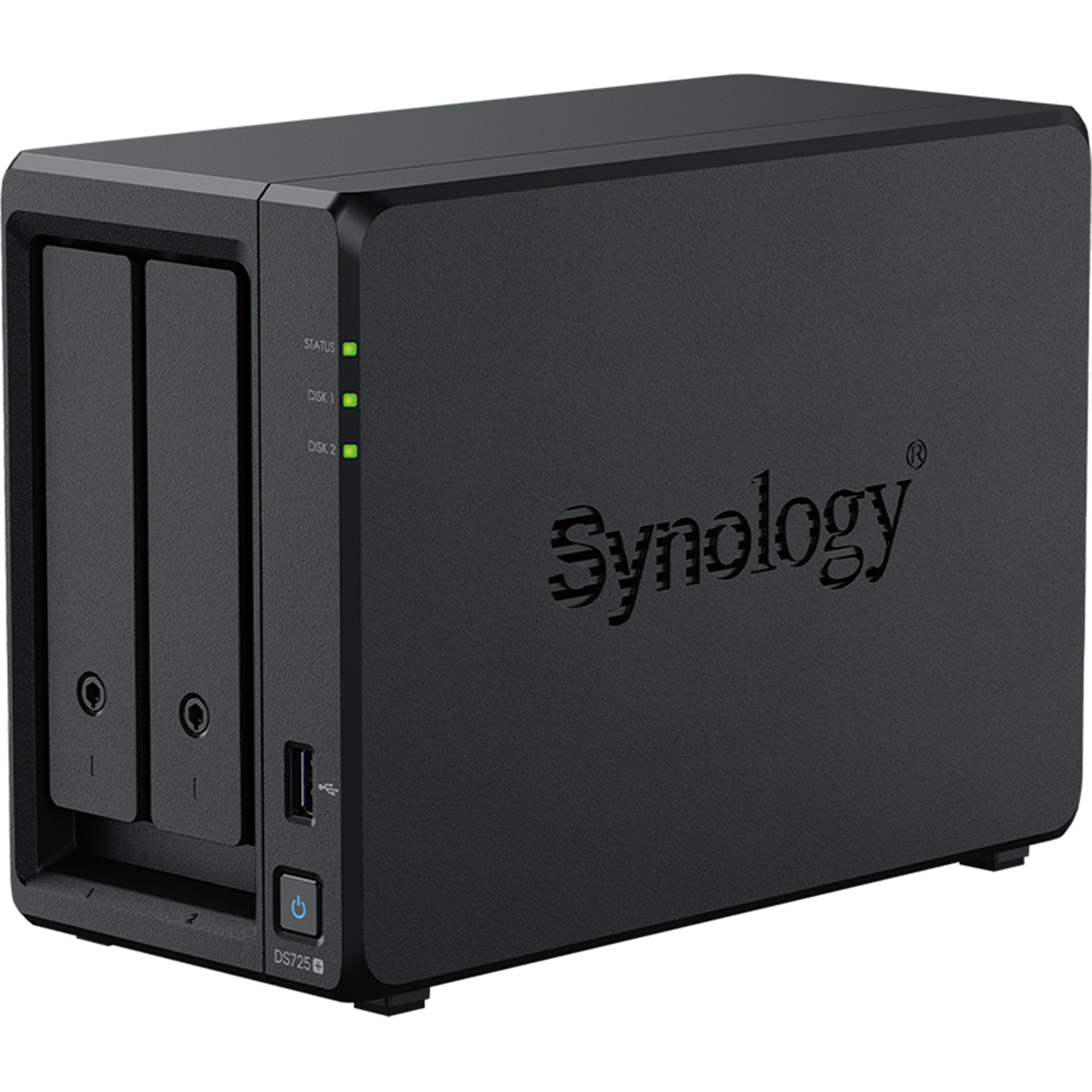 Synology DiskStation DS725+ 2-Bay NAS Server, AMD Ryzen R1600 Dual Core 2.6 GHz 4GB ECC DDR4 (32GB Max), 2xM.2 Slot, 1x 2.5 GbE, 1x GbE, 1x USB 3.2, 1x Type C (Expansion port), 3 Years Warranty, Upgrade to DSM 7.3 To Enable Third Party HDD