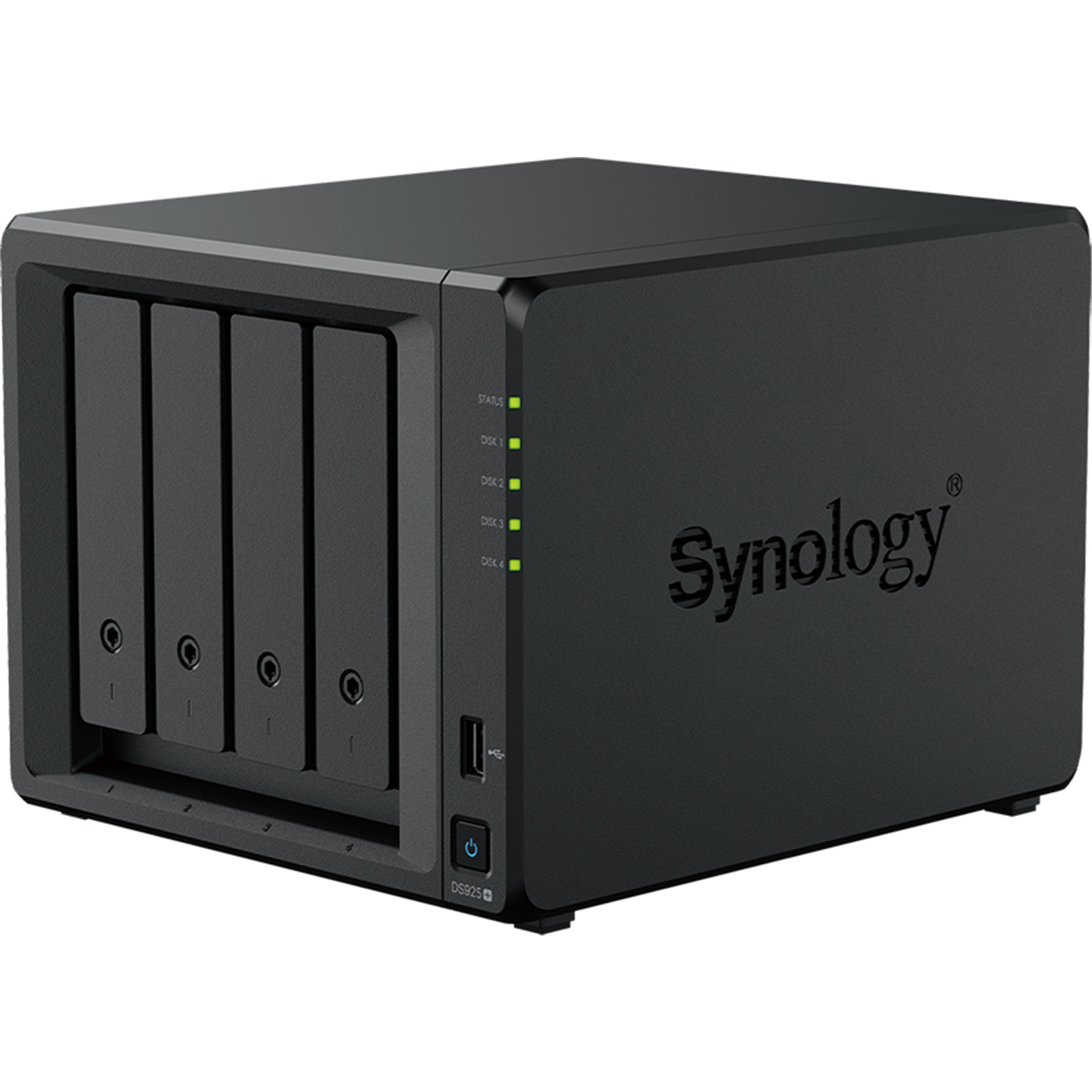 Synology DiskStation DS925+ 4-Bay NAS Server, AMD Ryzen V1500B Quard Core 2.2 GHz 4GB ECC DDR4 (32GB Max), 2xM.2 Slot, 2x 2.5 GbE, 1xPCI, 2x USB 3.2, 1x Expansion port, 3 Years Warranty, Upgrade to DSM 7.3 To Enable Third Party HDD