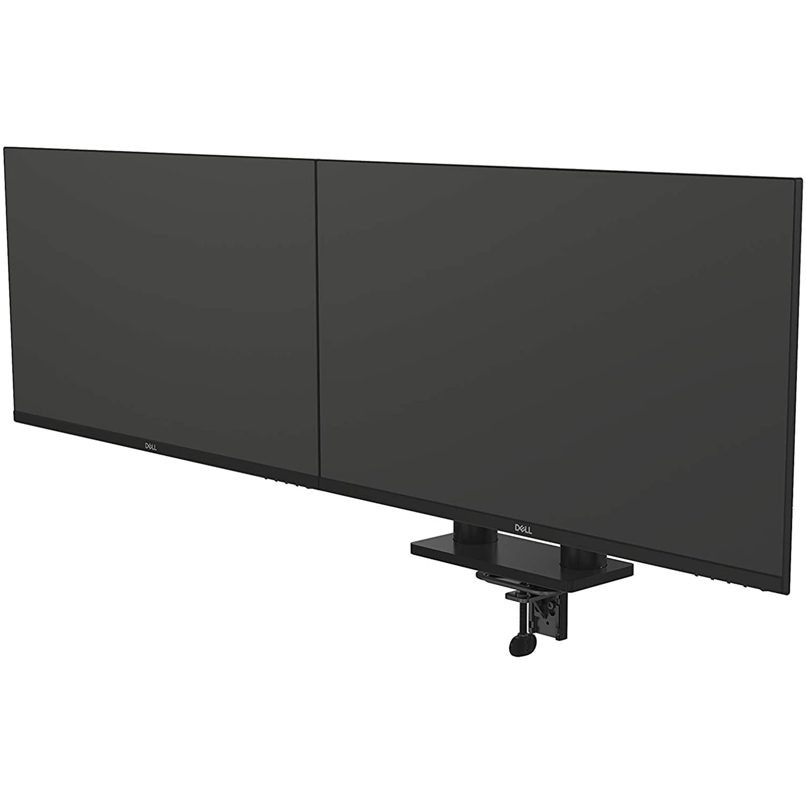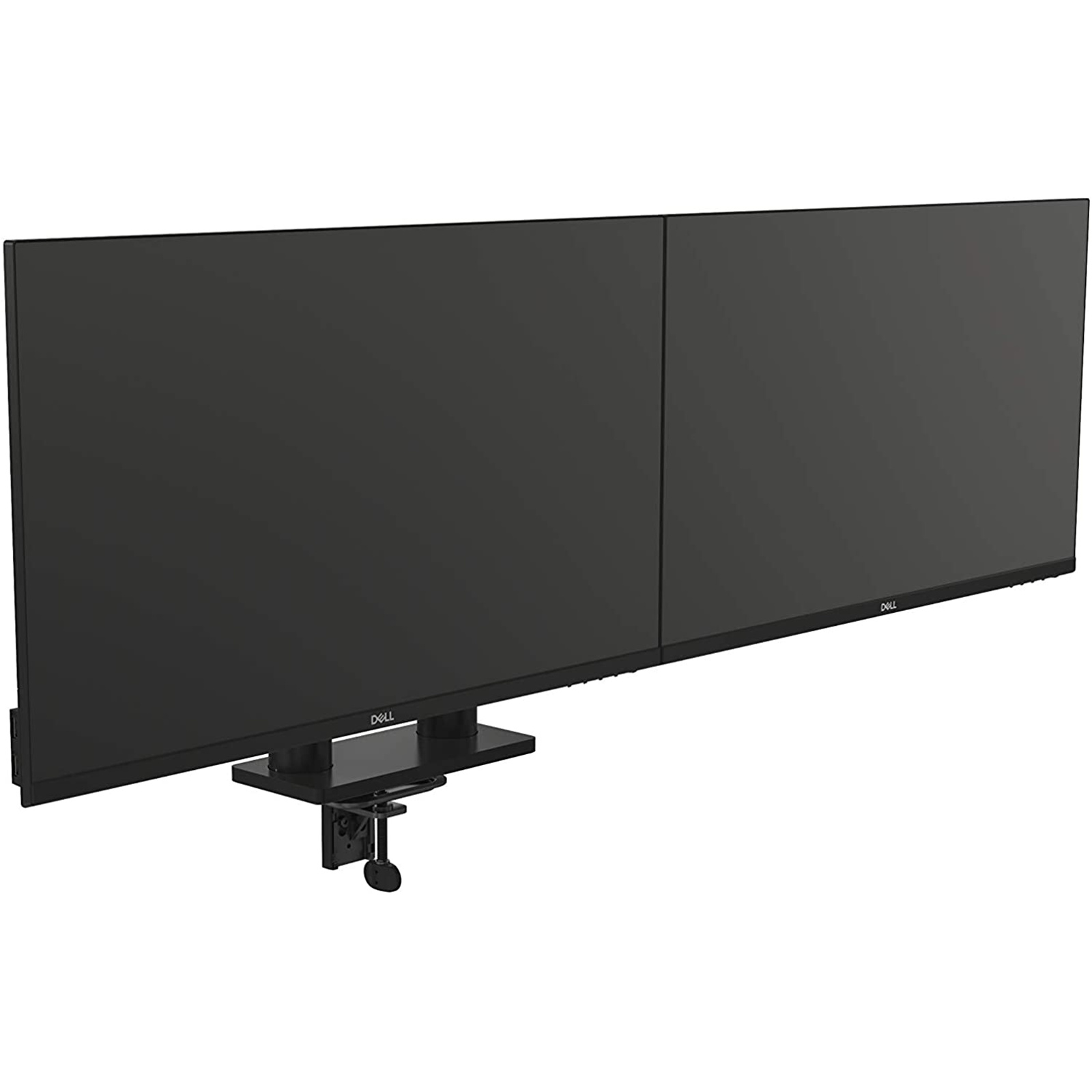 The Dell Dual Monitor Arm helps you optimize your desk space on a small footprint. The C-clamp is ideal for desk edges, while the grommet mount only needs a 2-inch hole to support monitors up to 27 inches in size.