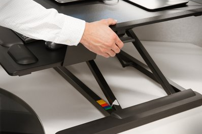 Within seconds you can easily transition up to 35lbs of weight between sitting and standing positions with a light squeeze of the spring paddle. The gas-spring makes the transitions smooth and effortless.