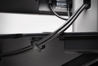- Cable Management System routes monitor and accessory cords to keep workstation tidy and uncluttered