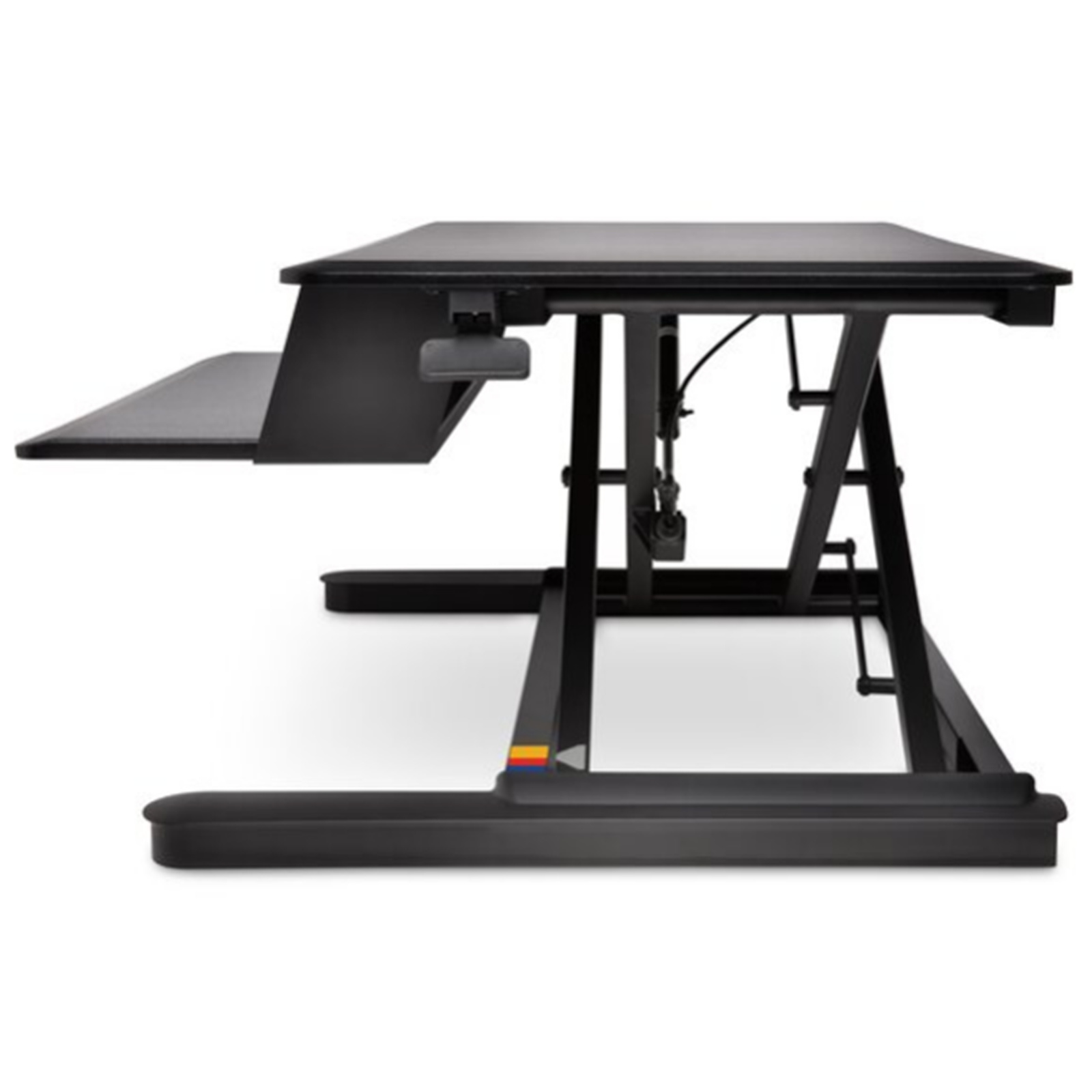 Fitting on a desk area as shallow as 21in (533mm), and great for cubicles and corner workspaces, the desk moves straight up and down within its own footprint - never protruding beyond the desktop surface.