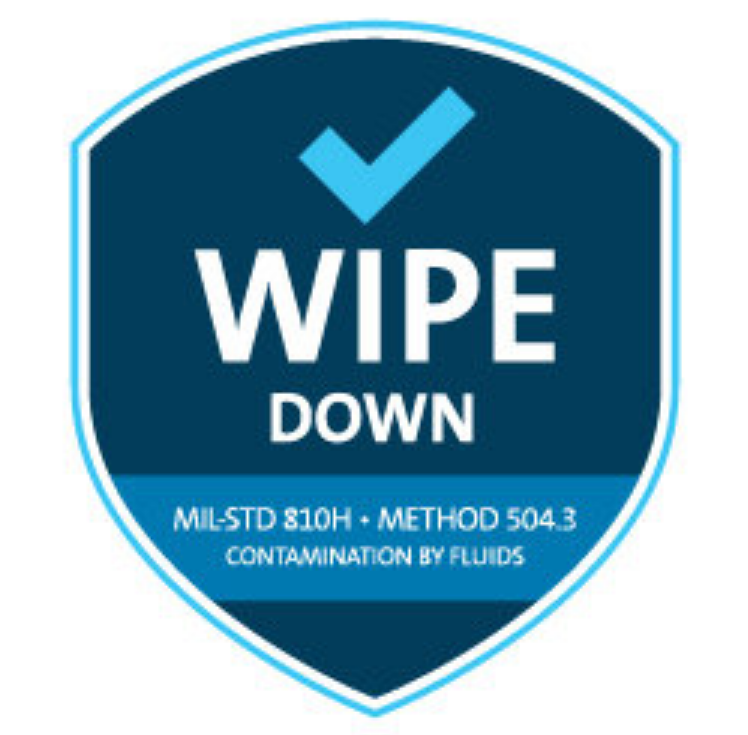 Meets wipe down (MIL-STD-810H Method 504.3 Contamination by Fluids) testing standards.